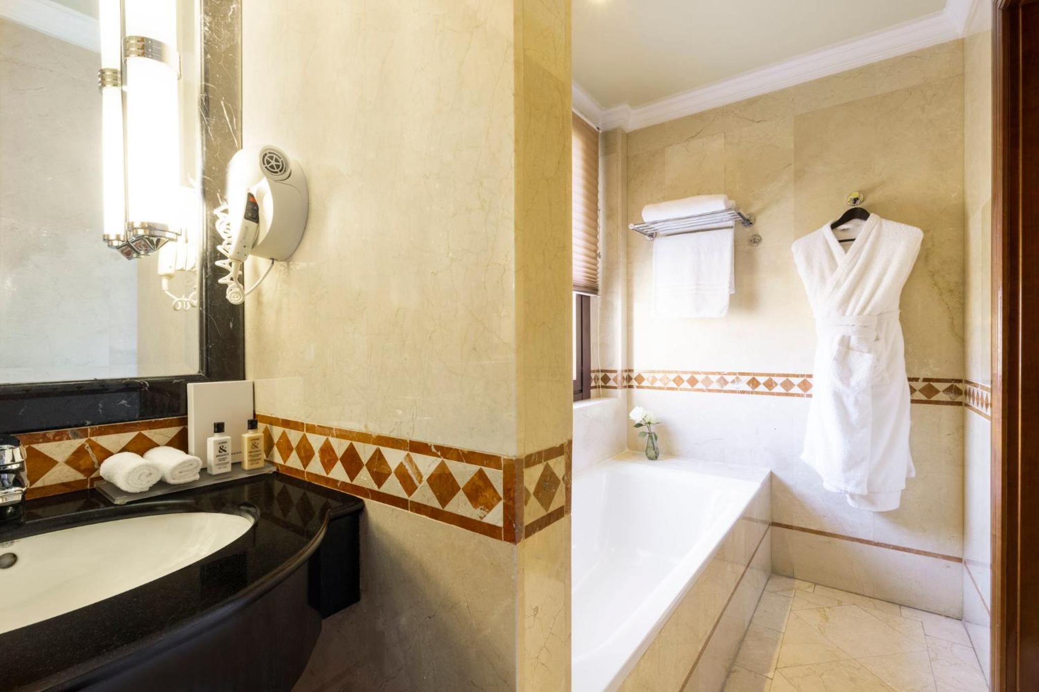 The elegant deluxe rooms feature both contemporary and classical design and are decorated in marble. They have a spacious work desk and coffee maker....
