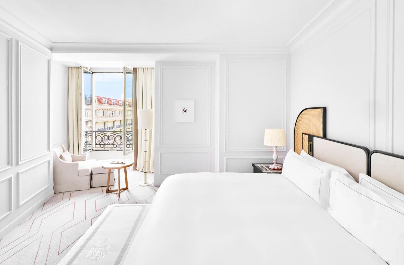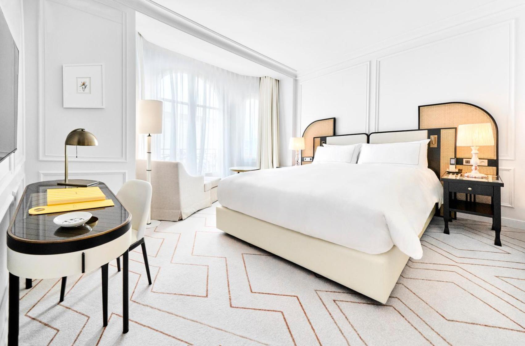 The Carlton Cannes, a Regent Hotel, offers air-conditioned rooms with satellite TV and plush bedding. Guests can enjoy views of central Cannes or the bay from their rooms, with some featuring a balcony for a touch of luxury.