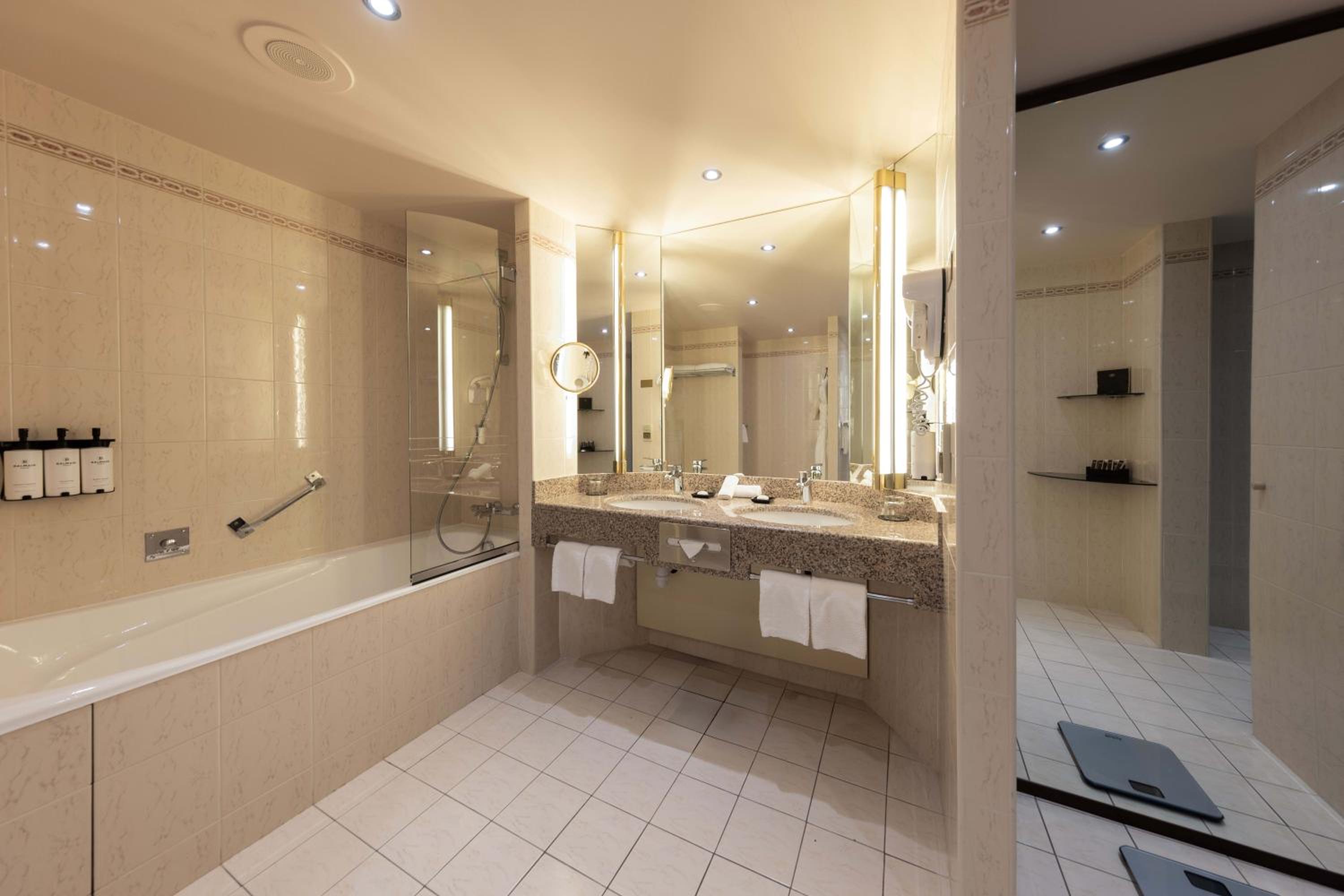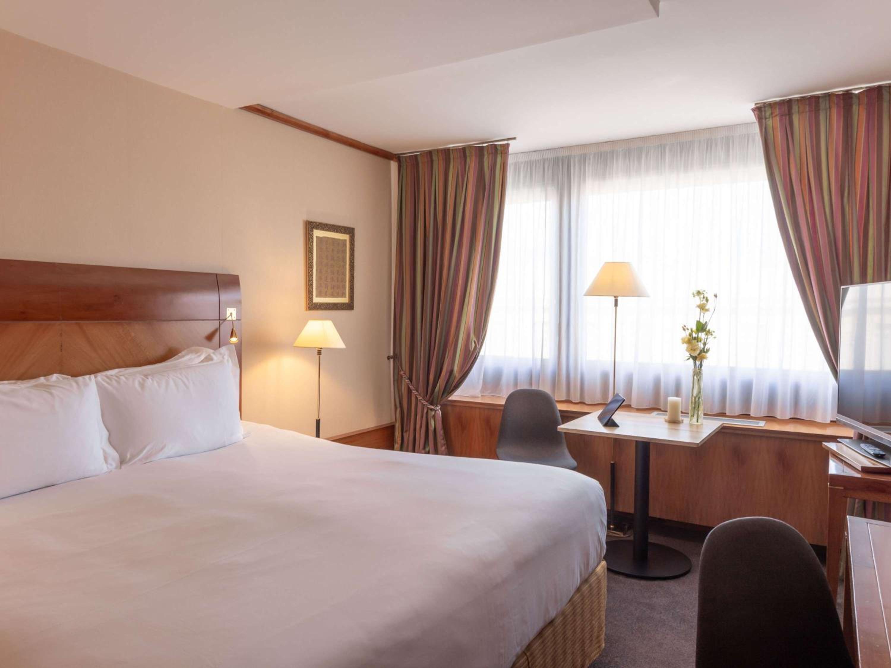 Belle chambre, spacieuse et confortable. On sent, néanmoins, le poids de l'âge du bâtiment, dans les chambres, mais rien d'insurmontable. Petit déjeuner parfait et restaurant de l'hôtel au top. Personnel très agréable.