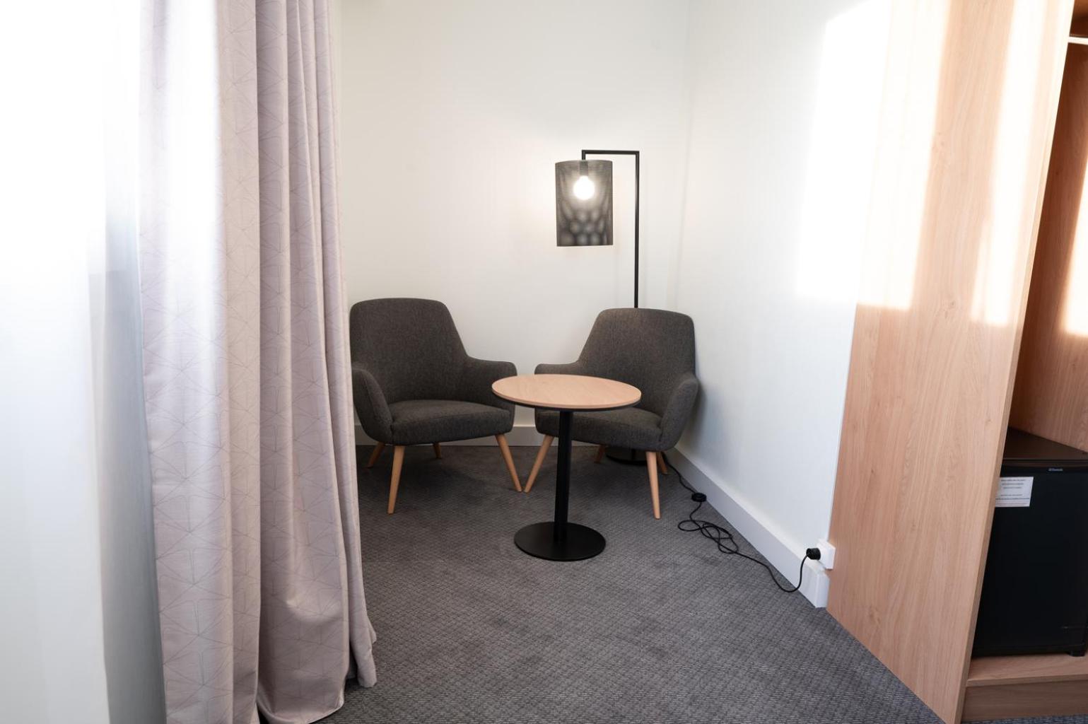 Cons: Very bad smell in bathroom. Parking was strange you had to get a key for a garage down the street, lock car in return key then reverse the procedure when leaving, Not really worth £16 a night. Very small lounge area only about 6 chairs