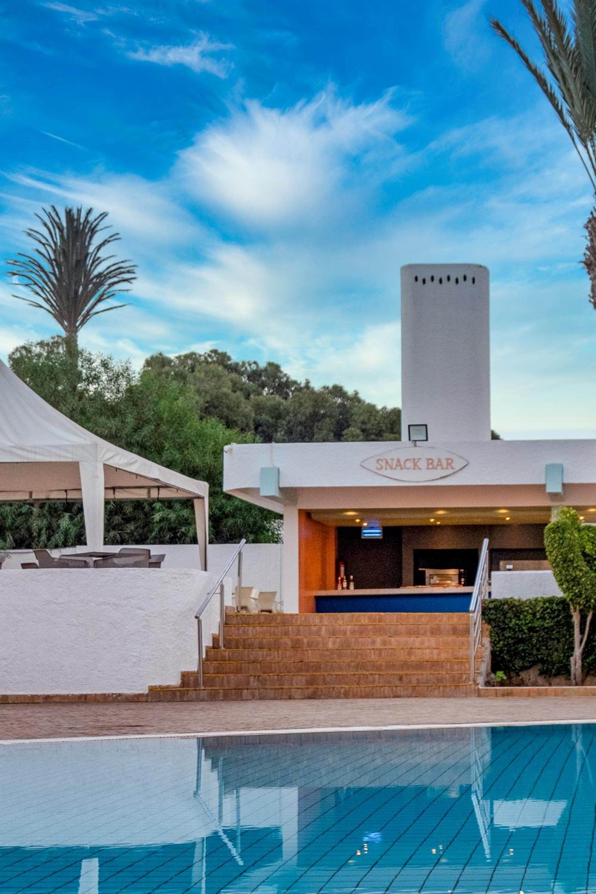 Séjour agréable. Complexe propre et spacieux. Repas sous forme de buffet variés avec entrée plat dessert soirée à thème barbecue ou français…Un bémol pour les cocktails. Prêt de serviette à la piscine moyennant 200 dhrm de caution. Tv avec chaîne française. Équipe d’animation au top. Très calme la nuit.
