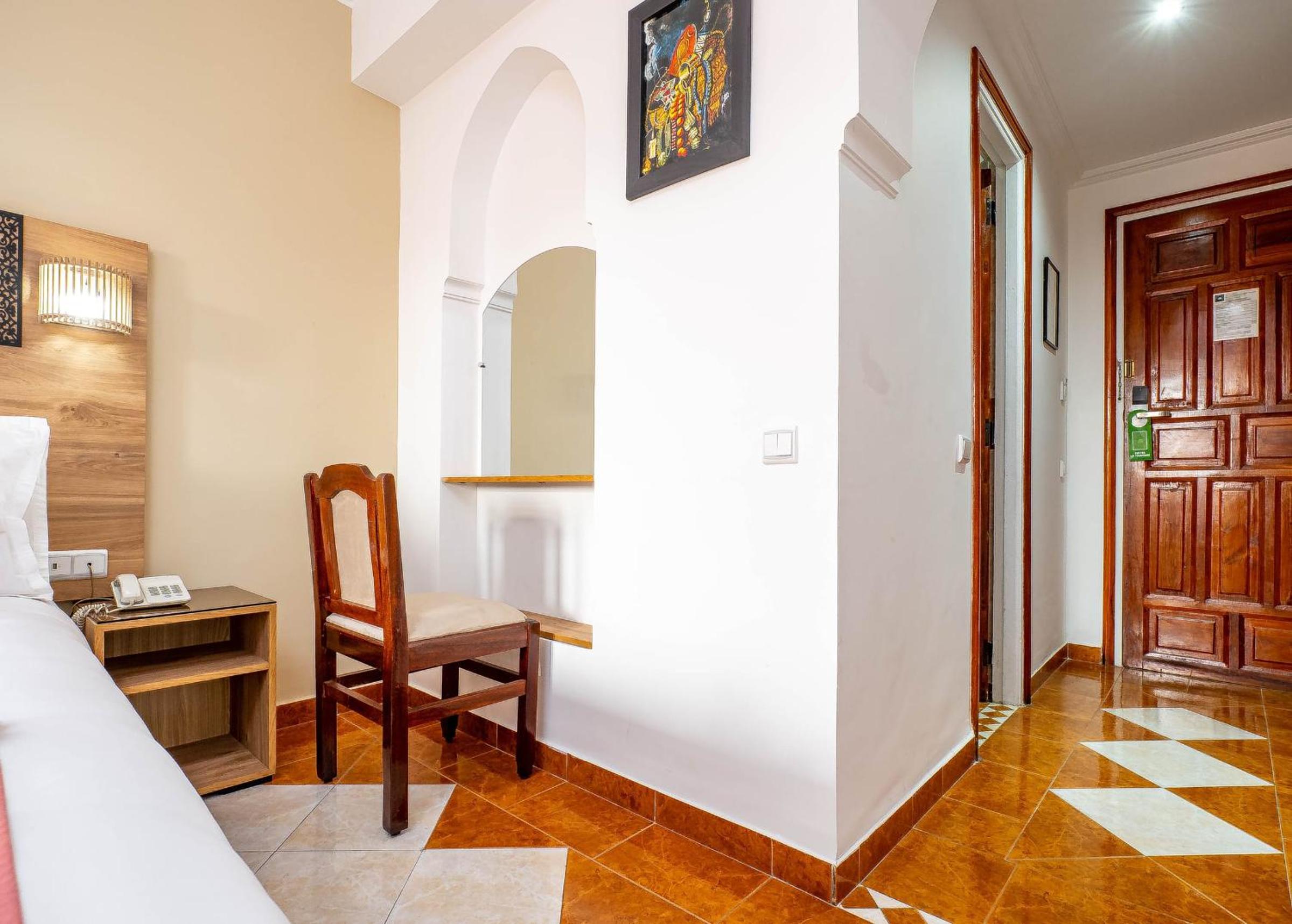 Donât stay at the Oudaya, the rooms are tired and in need of some serious updating. Our pillows were rock hard and there were no mattress protecters on the mattresses. The toilet cysteine was just perched on top of the toilet and I simply donât have words to describe the bath. The breakfast had a very limited choice, only 1 cereal, only plain yogurt and not a piece of fruit in sight unless you include the watery strawberry jam and the marmalade. The staff really let the place down, the only staff to smile during our stay were the housekeeper and the doorman. We only used this as a base but wished we had spent that little more.