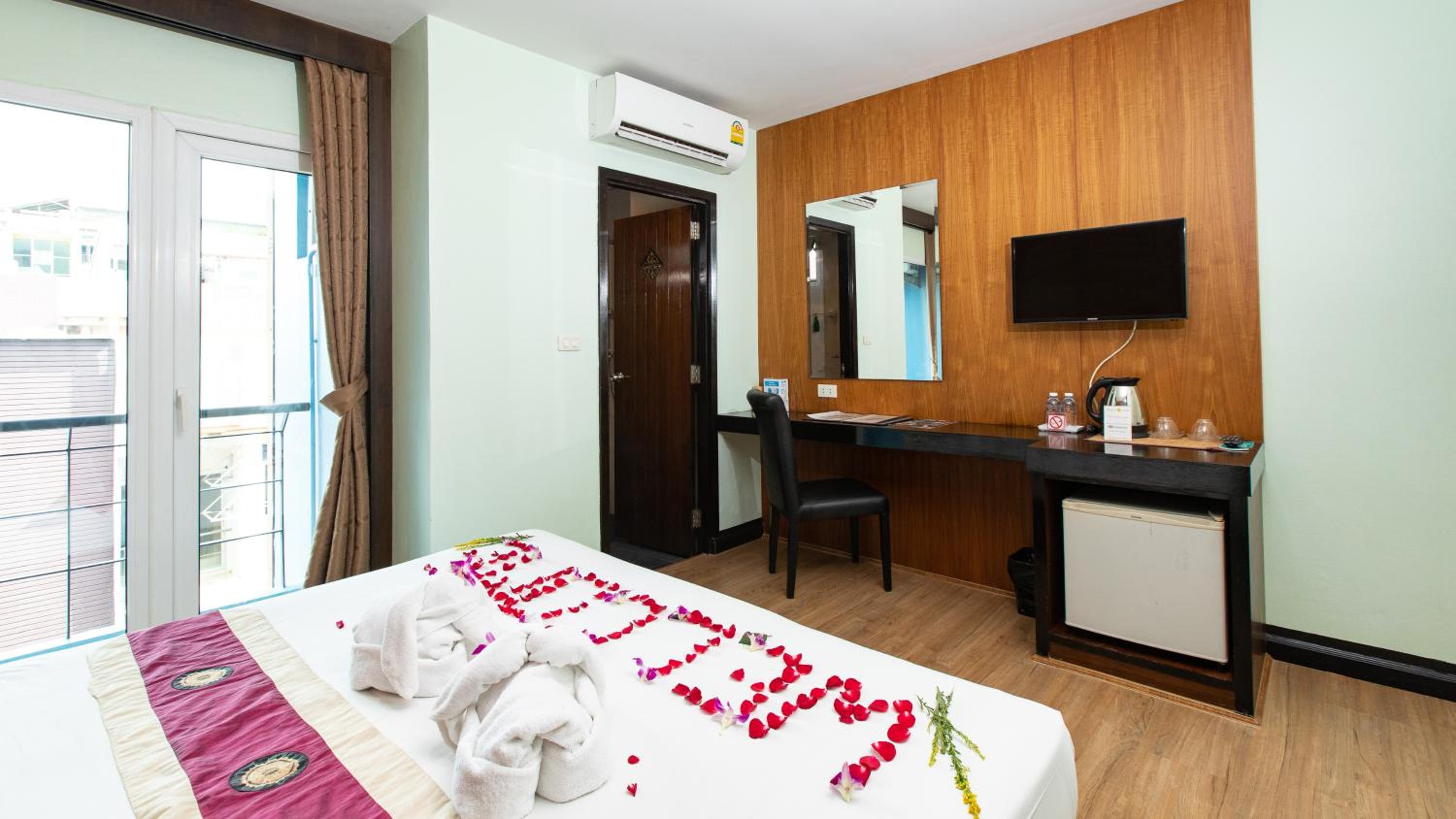 Nice and clean comfortable room. Easy access to patong beach and streets markets. Many good restaurants nearby. Great value for money.