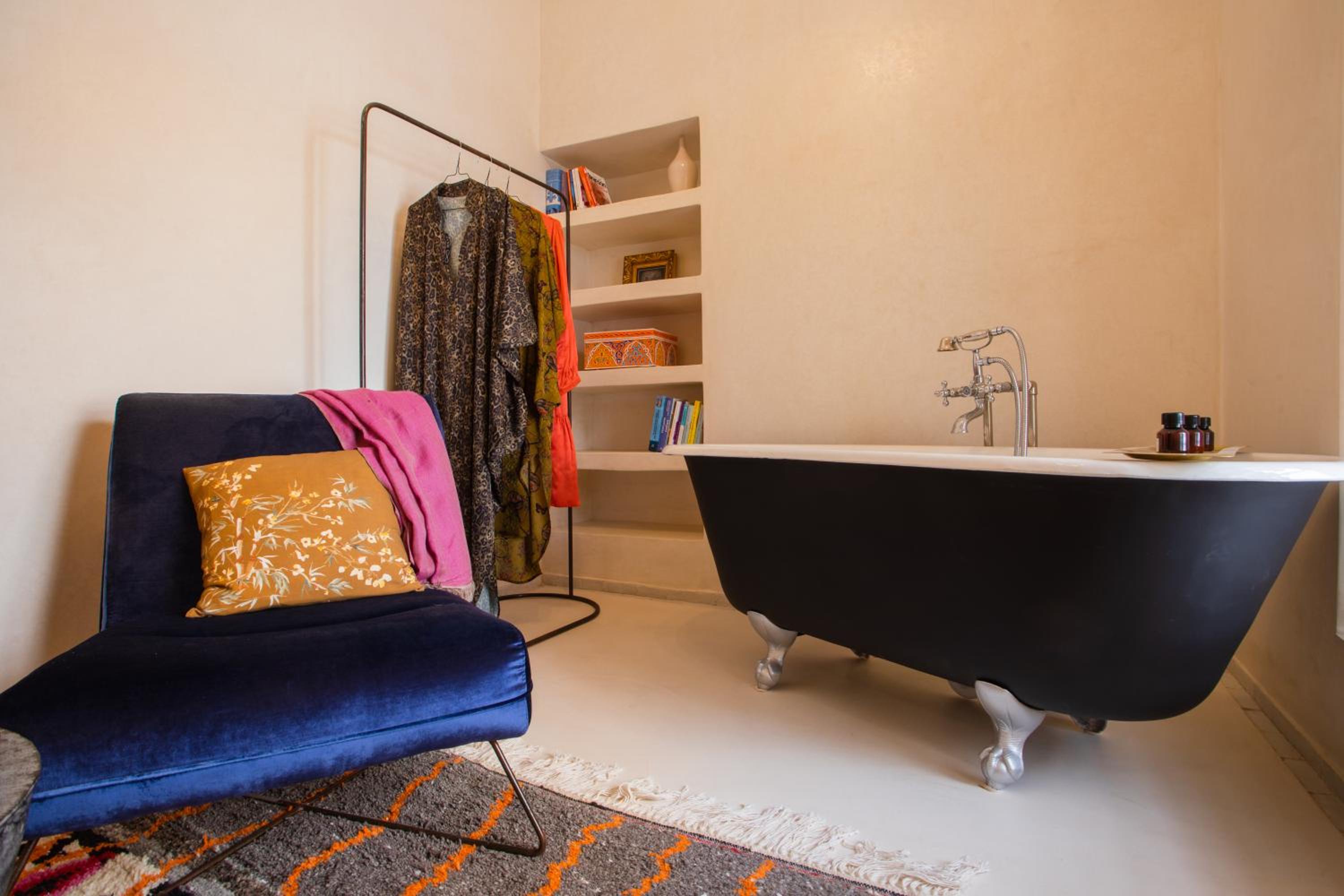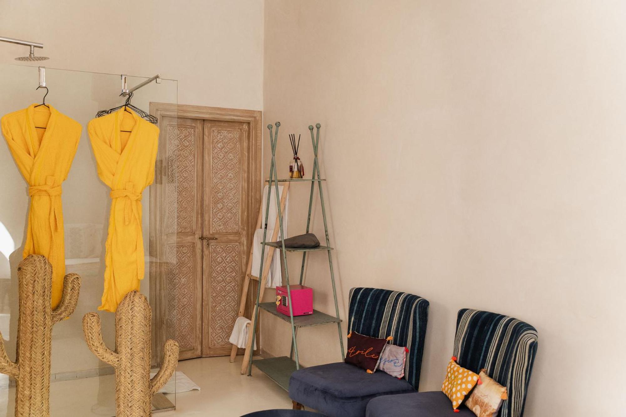 Riad La Lumière d'Étoile offers beautifully appointed units with private entrances, elegant bathrooms, and comfortable seating areas. Guests can enjoy the convenience of a desk, wardrobe, and premium amenities like bathrobes and slippers.