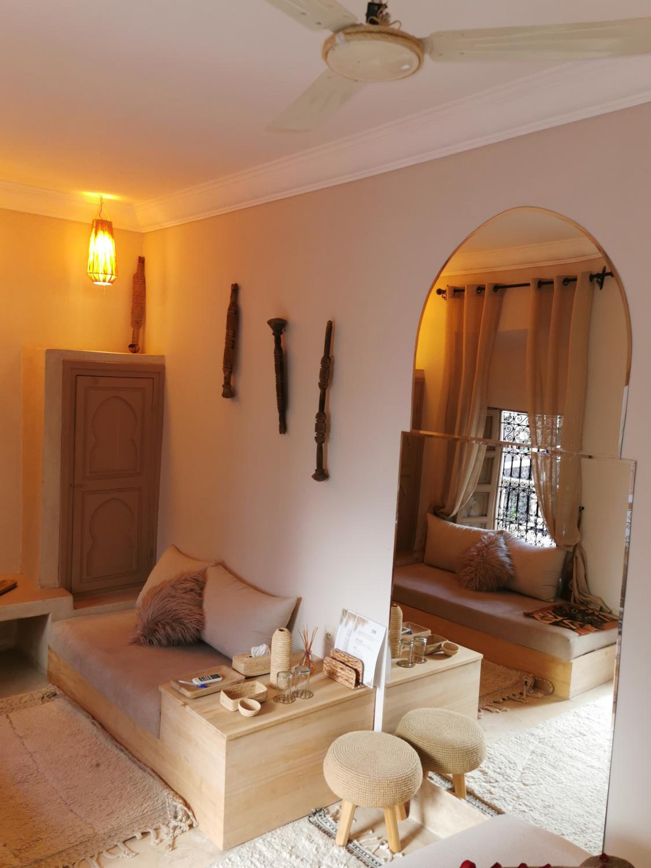 The room was cosy and very well designed with a comfortable bed. The riad itself was magical, the staff was very kind, helpful and friendly. Simo and Ali made us feel at home, attending to every need answering any questions with a big smile, we could feel they love what they do and where they work. This is a small riad with few room which makes it feels like you rented the place for yourself. The location of the riad is perfect, minutes walk from everything, we took a taxi only once. On one of the nights we had full Hamam treatment it was exceptional beyond words don’t miss out on that!!! (I recommend having dinner in the riad afterwards )