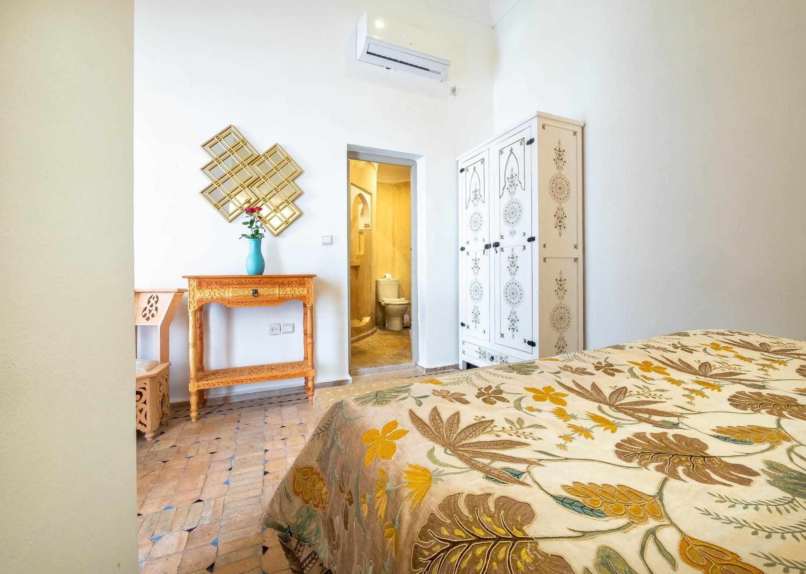 Unwind by the pool in the tranquil patio or soak up the sun on the roof terrace with picturesque views. The air-conditioned rooms with Tadelakt wall decoration provide a cozy retreat after a day of sightseeing.