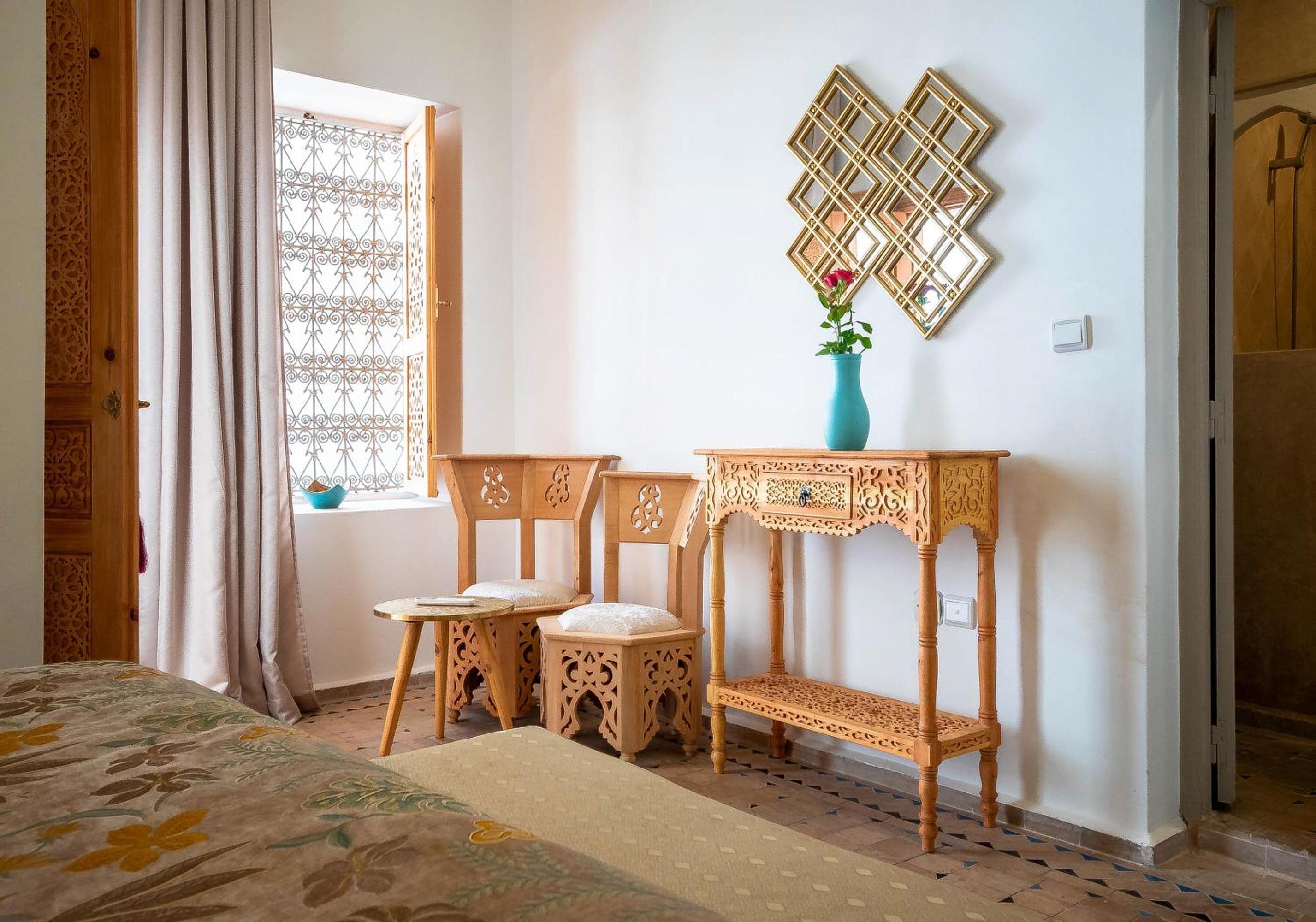Really friendly hotel with helpful and attentive staff. Nice intimate atmosphere and pretty roof terrace. Good Wifi and nice fresh pancakes, fresh orange juice and pastries for breakfast. Good, well laundered bed linen and towels. Plentiful hot shower. Satellite TV in my room had a broad selection of international news channels. Fantastic location for walking around the Medina and the Souk - enjoy a real taste of Morocco. Thanks to staff for helping find my way around!