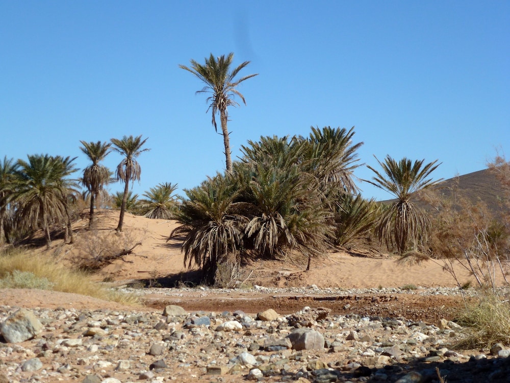 Dette sted ligger lige overfor hvor Sahara starter. Her er lidt råt - og stedet trænger til lidt vedligehold. Men det er svært at finde et bedre, mere venligt og inspirerende sted at starte sit bekendtskab med Sahara på.