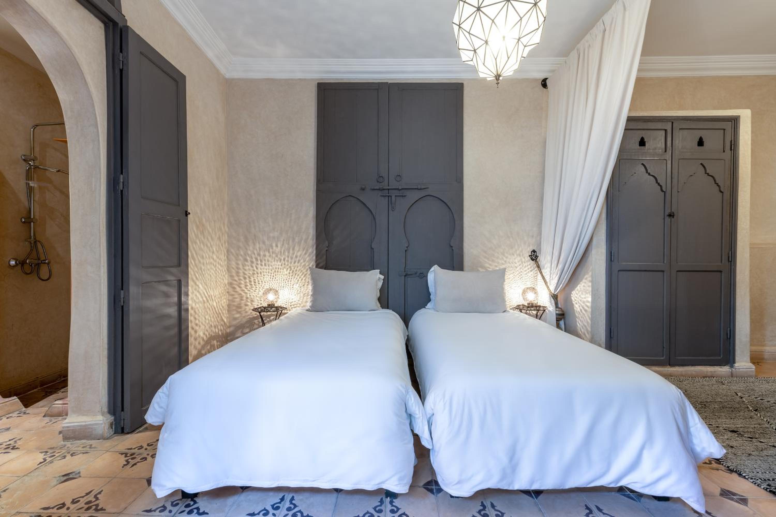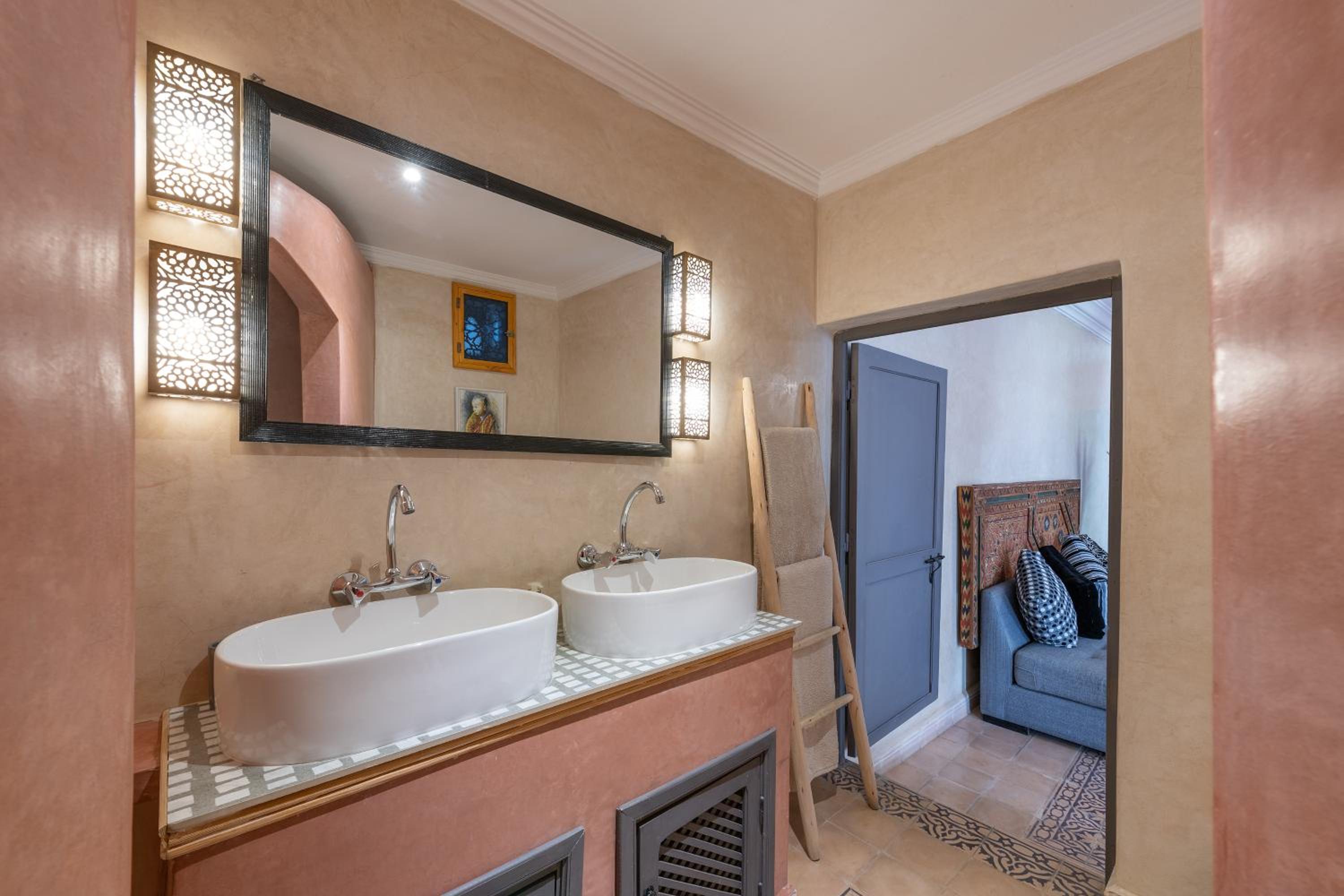 Cons: the location was awful. if coming to Marrakesh for the first time, as a tourist, I would not recommend this properly solely based on the lack of security and safety we felt during our stay. there are multiple narrow roads with dim lighting and dark alleyways that lead up to the property. Access to taxi and busy streets were difficult from this location, also weren’t any shops around for basic necessities. Also, no safety deposit box was located in the room, no fridge, no mirror other than the bathroom mirror, no telephone to contact reception, leaving us feeling slightly isolated. There was also a significant language barrier that made our experience slightly more difficult. Considering we were a group of women travelling, it was not the most encouraging experience. Albeit the people at the hotel were lovely, ultimately safety trumps all.