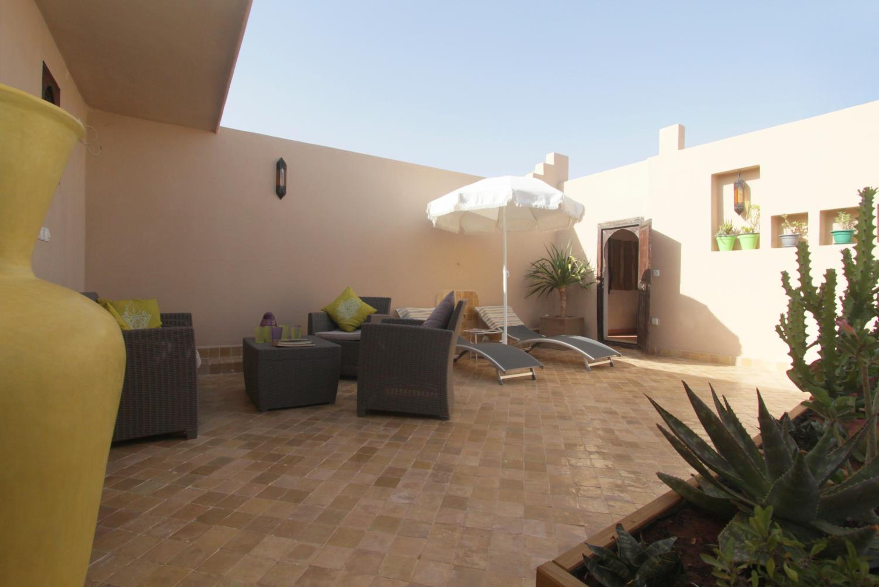 Enjoy a relaxing stay at Riad Massiba with its inviting terrace featuring sun beds and a traditional hammam for a rejuvenating experience.
