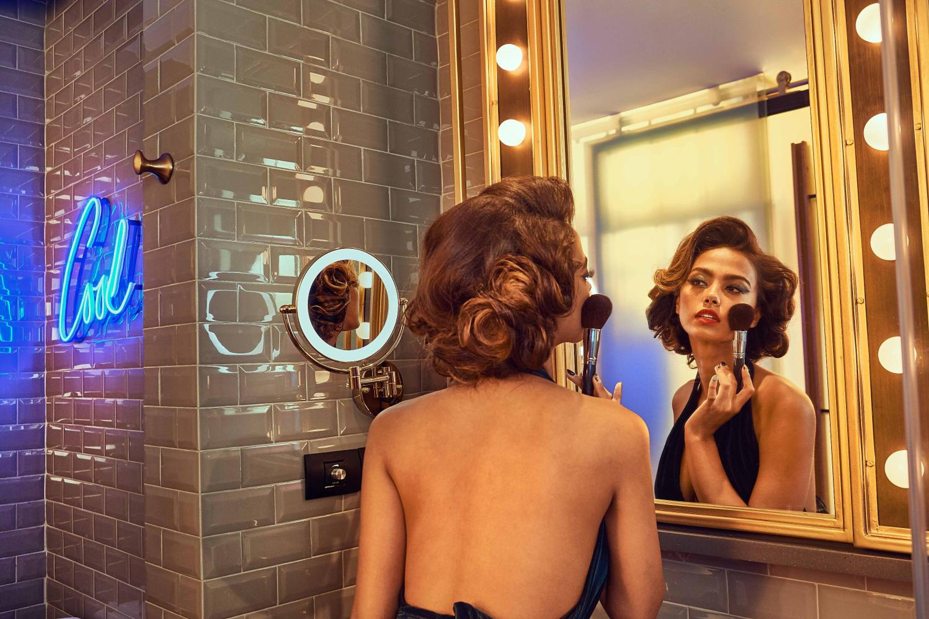 Cons: You can hear every sound in the hallway i.e voices and other doors closing not a lot of bench space in the bathroom