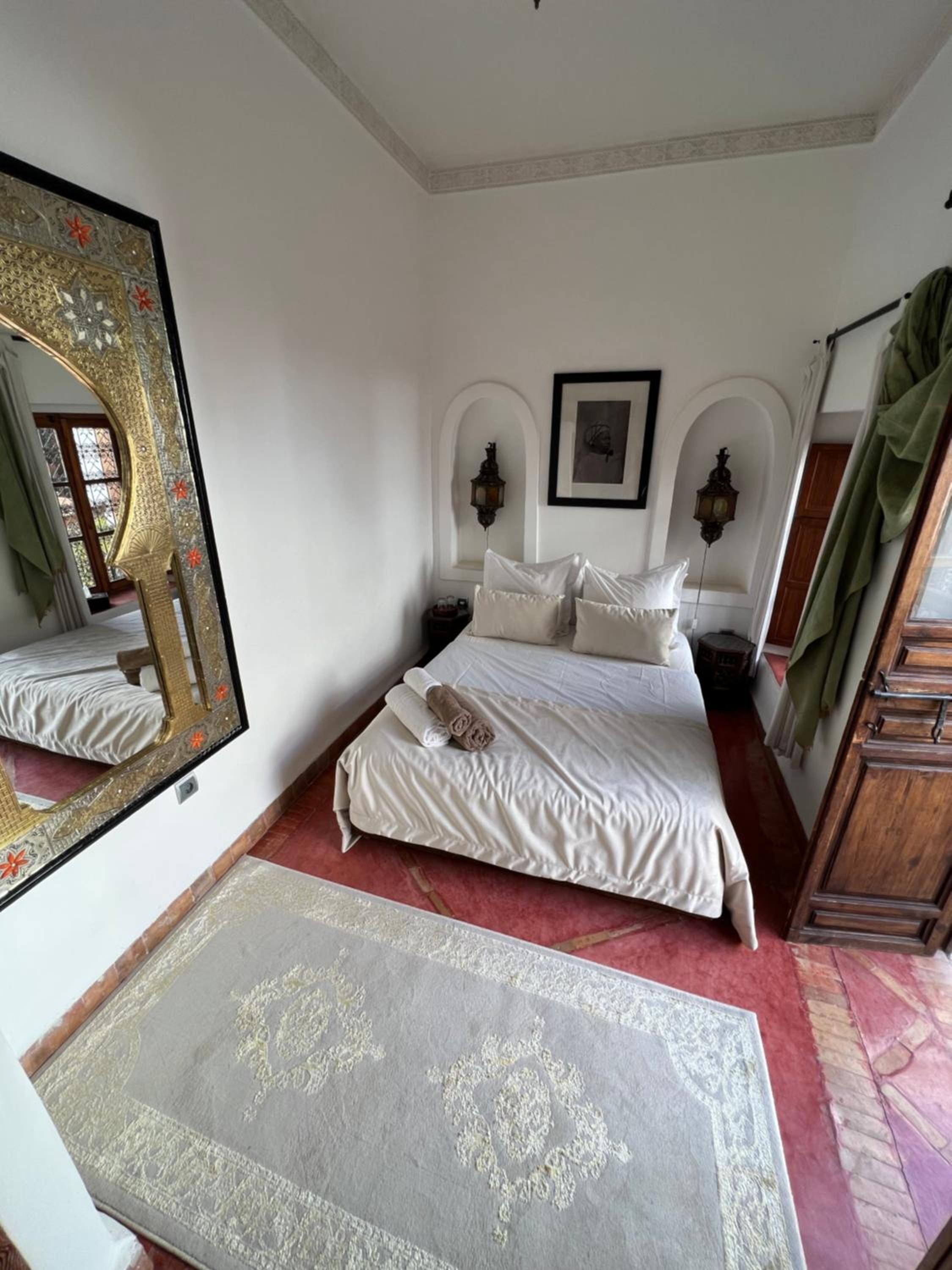 De locatie is geweldig en heel veilig. Rust in de Riad en binnen een minuutje lopen, sta je midden in de reuring. Mijn dochters van 21 en 17 vonden het geweldig. Het personeel is buitengewoon vriendelijk en behulpzaam. Het ontbijt was elke dag anders en met liefde gemaakt. Een goede start van de dag. De kamer werd elke dag netjes gemaakt, was warm en gezellig (Kerst 2025). We sliepen met 3 personen in kamer Le Royale. Goede, warme douche en sfeervol ingericht. Laat je beslist ophalen van het vliegveld (15 euro per gezin), de riad is een verstopt pareltje. De eigenaar is gul en heeft oprecht hart voor zijn gasten.