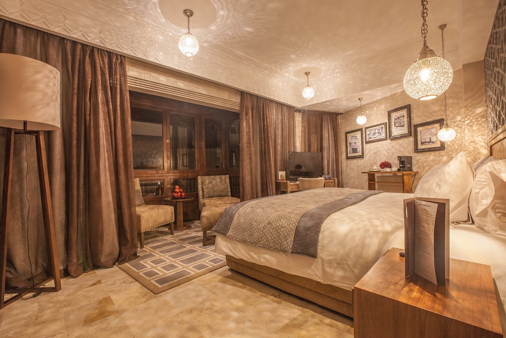 Offering views of the Koutoubia Mosque and of the Atlas Mountains, this air-conditioned suite has a sauna, spa bath and a fireplace. It features a sep...