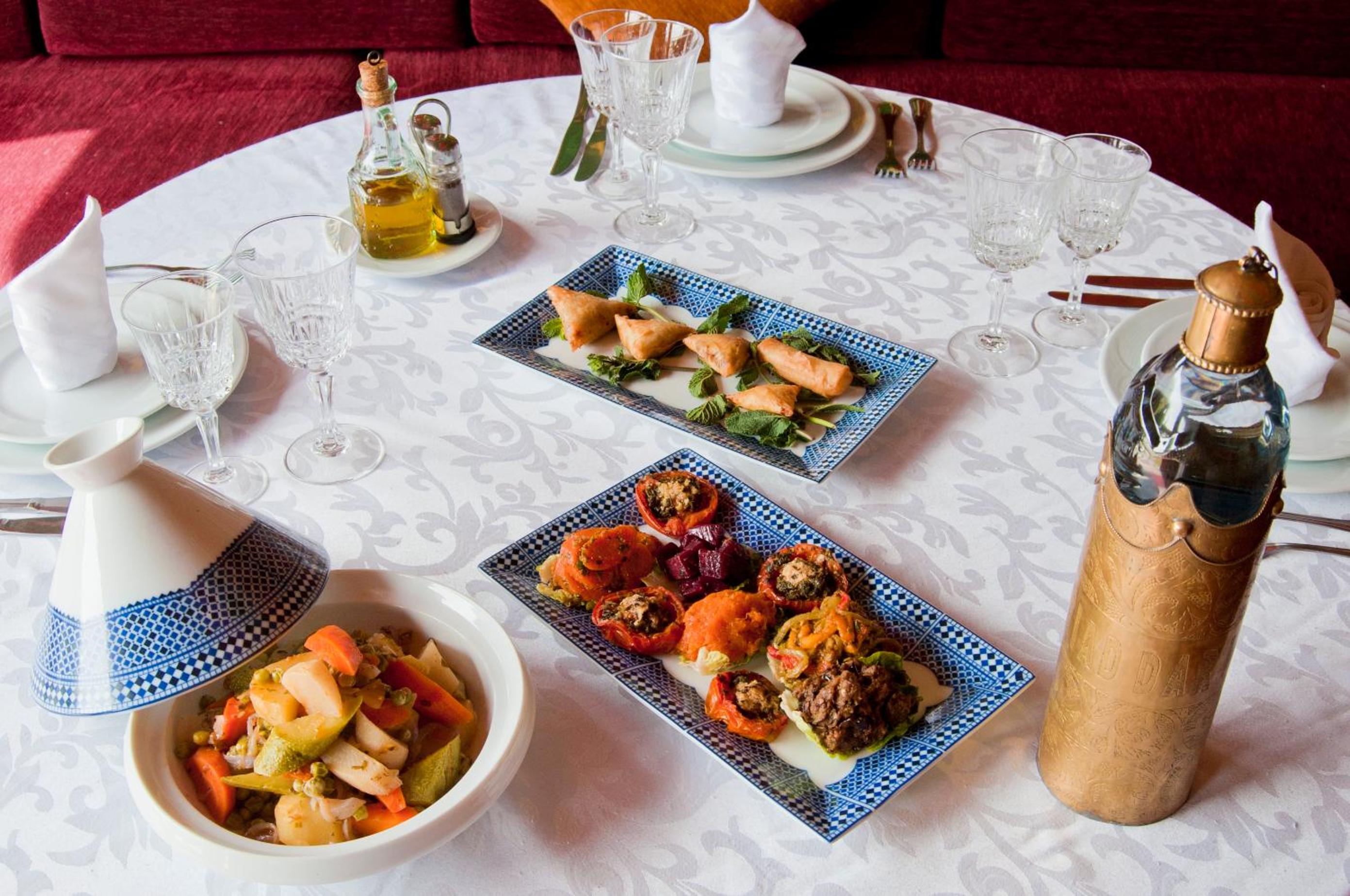 Indulge in the flavors of Moroccan cuisine at the on-site restaurant, where only the freshest ingredients are used. Guests can enjoy a variety of dishes made with produce sourced from the hotel's farm and garden. Whether dining in the kaydale tent, the restaurant, or the terrace, a memorable culinary experience awaits.