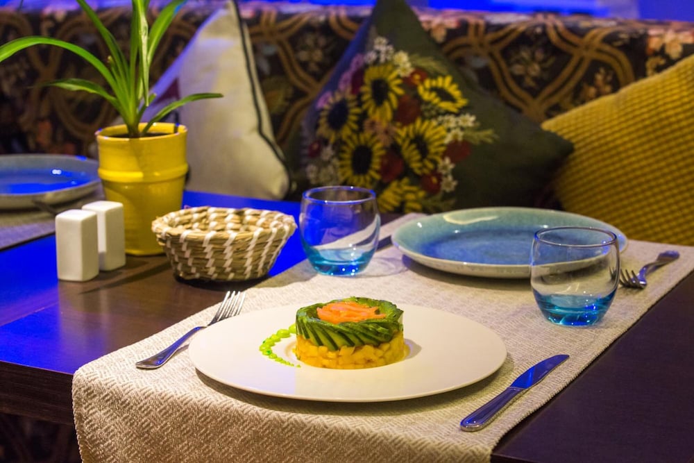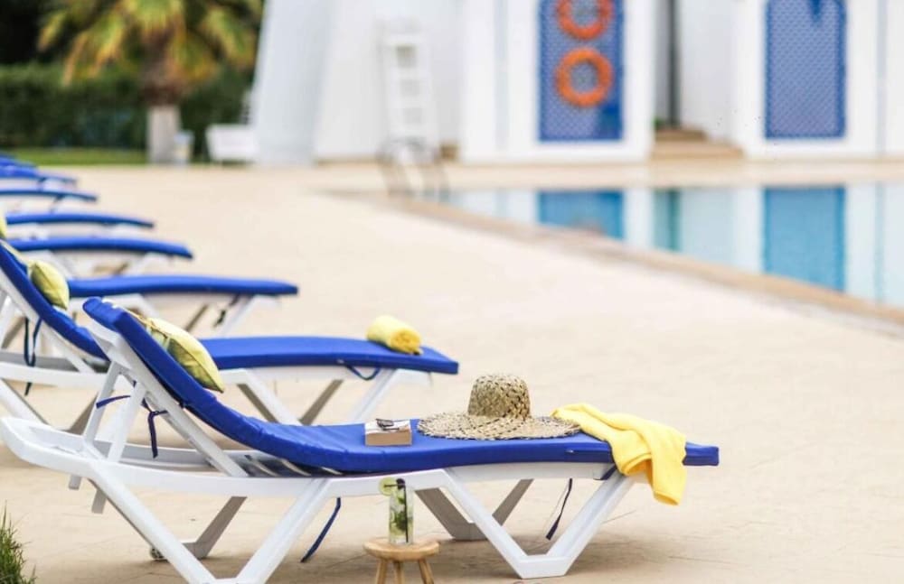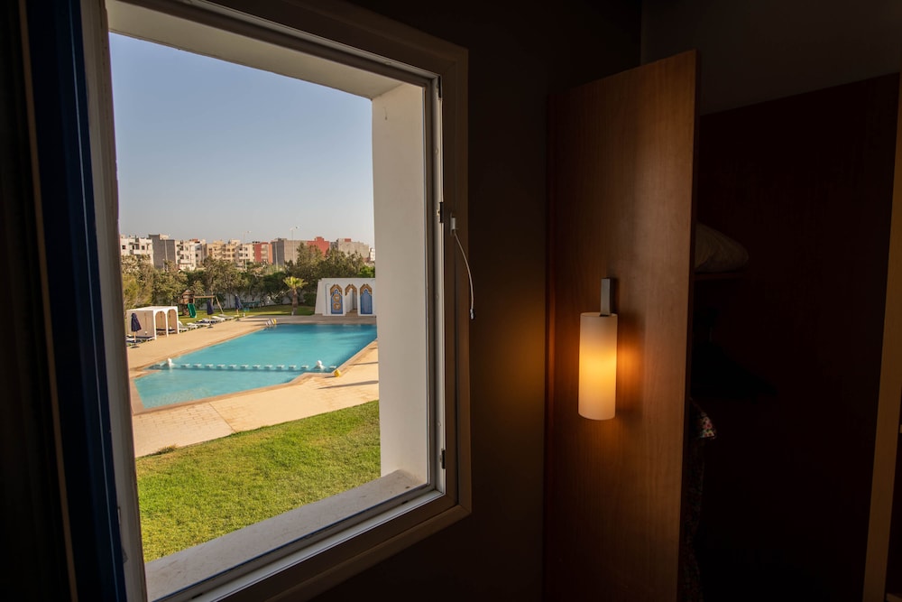 Best feature is the exterior of the building and I guess a parking spot is a luxury in Morocco. Came on time at 12pm and they checked my reservation to ensure they had it. I decided to get a late lunch and then check-in fully. When I tried to check-in around 4pm they didn’t have my rooms ready. I reserved 2 rooms with a pool side view. After waiting in the lobby and asking a few times if the room was ready they finally said it was 30 minutes later. Got to my room to find it open, floors dirty/wet, no towels, and a clogged sink. So after another hour got the sink unclogged and a towel that I had to grab from the cleaning trolly because there wasn’t a staff member to be seen. I decided to wear slippers in the room and not bother to tell them to clean the floor again. My poolside view was a joke from a 1x2 ft window that mostly had a view of the adjacent construction dirt zone. I literally had to open the window and stick my head out to get a good view of the pool. Elevator had a foul smell. Pool table required coins to play. Breakfast included! Had to request fresh orange juice that Morocco is infamous for because initially they had powdered orange water. All breads were cold. Tables were dirty. Staff attire was dirty. Went to outdoor lounge area to drink coffee and tea to find rusty chairs and sun damaged plastic chairs with dirty spots on chair pads. Overall, I rate this hotel a 1 star because the price, appearance, and accommodations.