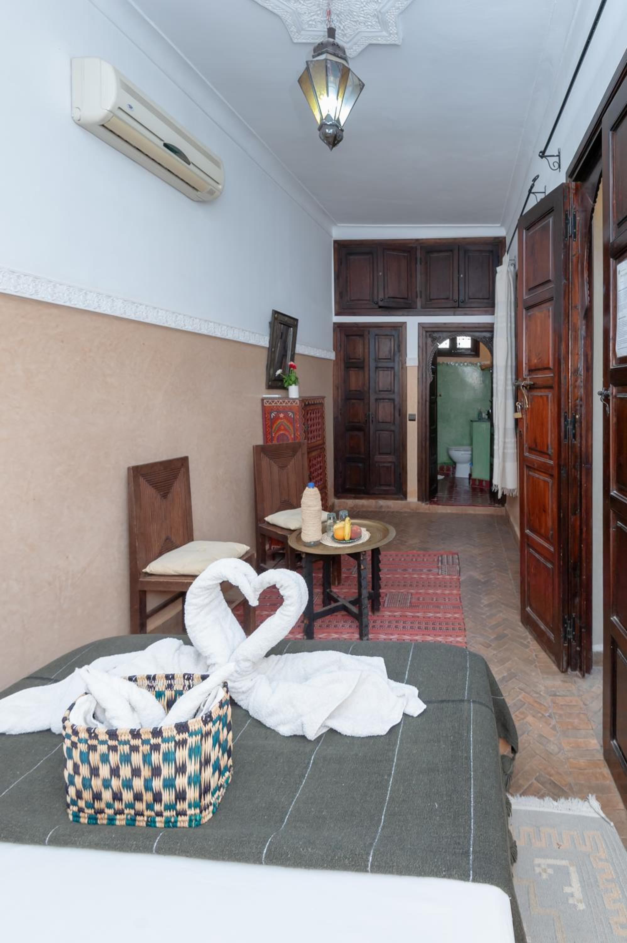 Precioso Riad , hemos tenido una estancia maravillosa. Muy limpio y el trato excelente. Hemos tenido alguna excursión temprano y se han asegurado o bien de tenernos el desayuno ya listo o prepararnos un desayuno para llevar.El desayuno buenísimo, espectacular y muy completo. Nuestro anfitrion Ahmed fue muy amable y pendiente todos los días de preguntarnos si estábamos bien o necesitábamos algo. El Riad está Alejado del centro de la plaza, aunos 20 minutos andando, para nosotros fue mucho mejor porque te alejas del caos del centro y estás en un sitio muy tranquilo y sin ruidos. El barrio impacta verlo al principio pero he de decir que la gente allí ha sido muy amables con nosotros y no nos hemos sentido inseguras en ningún momento. Recomiendo este alojamiento y si volvemos repetiremos sin duda. Gracias Ahmed por una estancia maravillosa!! Shukran!