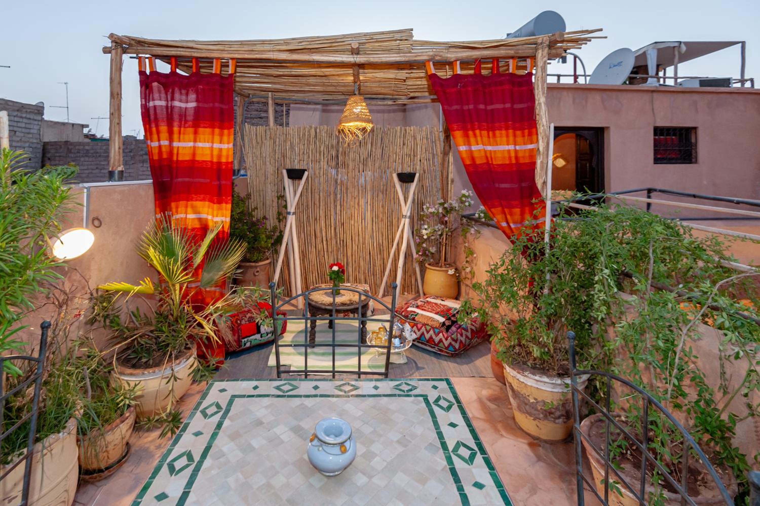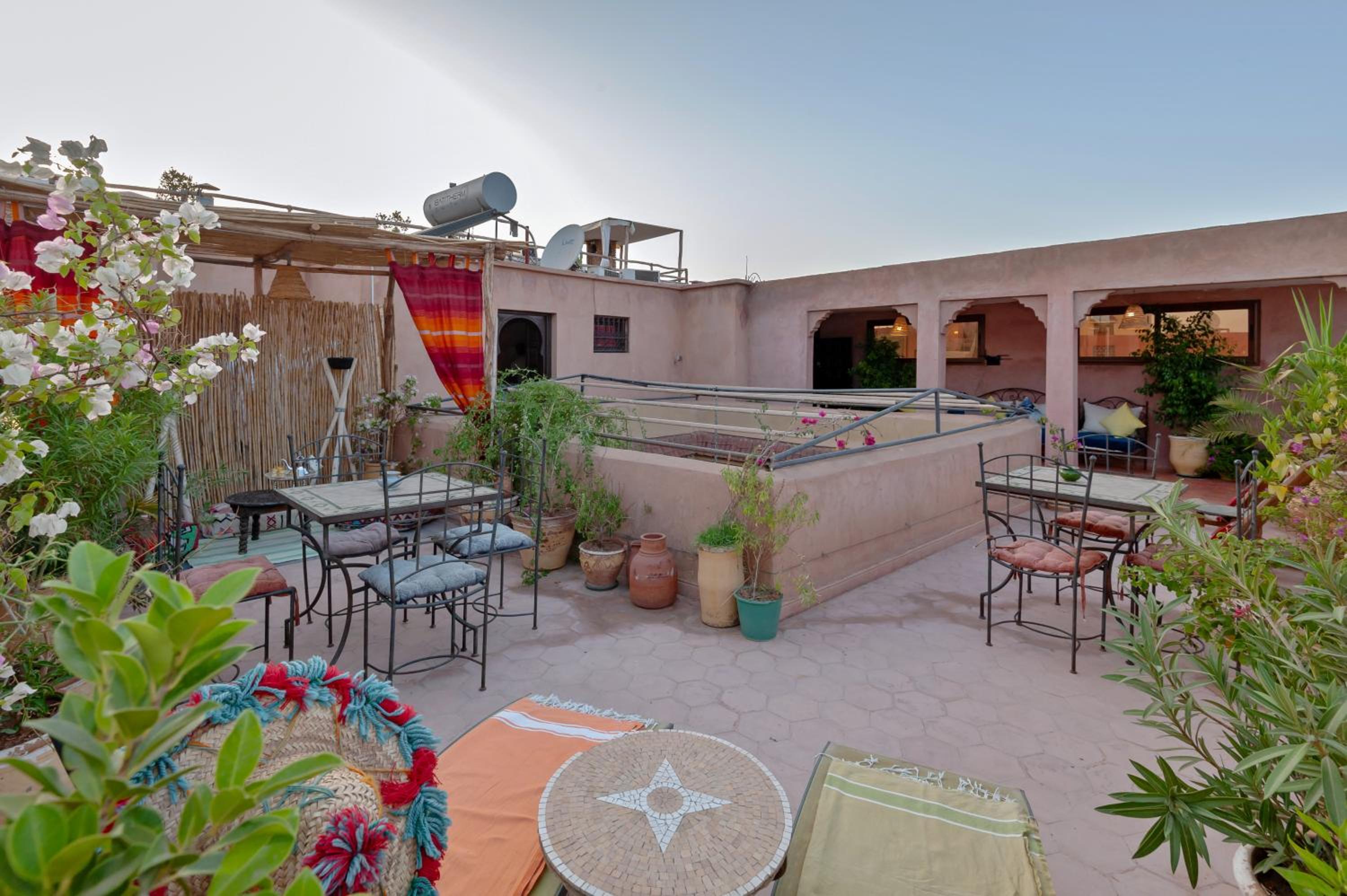 Tranquil Amenities: Relax in the green patio, unwind in the hall with a fireplace, or soak up the sun on the terrace and solarium surrounded by plants and flowers - the perfect retreat after exploring the bustling Medina.