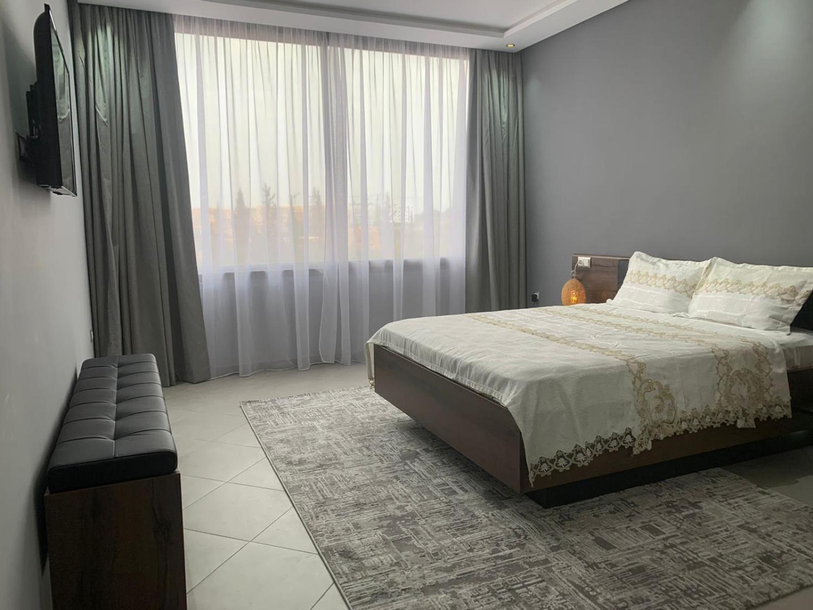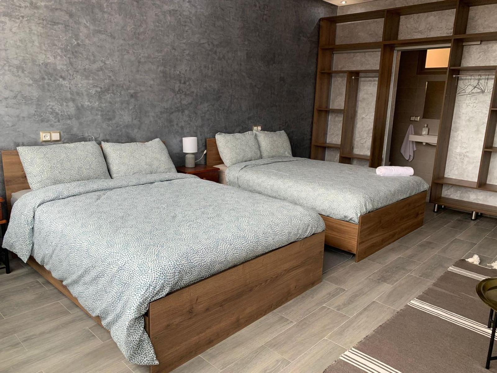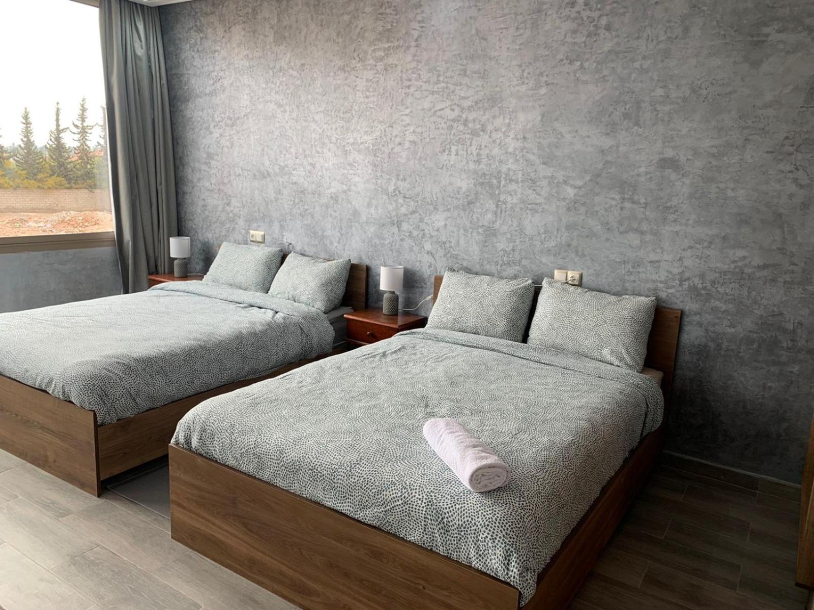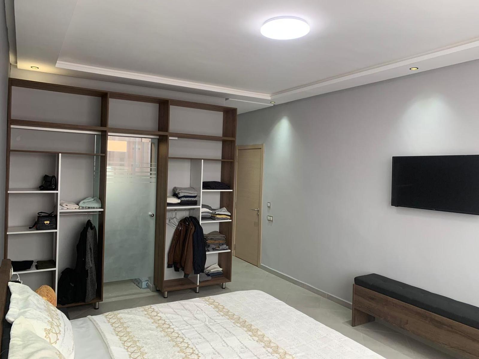 L'hôtel est effectivement à 2,7 km de l'aéroport, comptez 80 dirhams de taxi car l'emplacement est quand même considéré comme étant en centre-ville. C'est pratique pour être à l'aéroport dans les délais, mais beaucoup de taxis ont du mal à le trouver donc prévoyez de leur montrer l'itinéraire sur GPS. La jeune femme de la réception, très aimable, a fait de son mieux pour que nous puissions avoir un petit déjeuner (inclus dans le tarif Booking, mais seulement servi de 8h30 à 10h30) avec des msemen, du pain, du beurre, de la vache qui rit, des confitures, des olives et du thé à la menthe ; elle ne parle qu'anglais et arabe mais elle comprend le français. Le quartier n'a que des immeubles résidentiels (tous en construction) et peu de commerces, mais je recommande le snack Menna, situé juste en face en tournant le dos à la pharmacie, où nous avons dégusté un très bon thé à la menthe et de délicieuses brochettes, digne d'un resto plus chic; la propriétaire est très sympa et on peut discuter en français avec elle en plus.