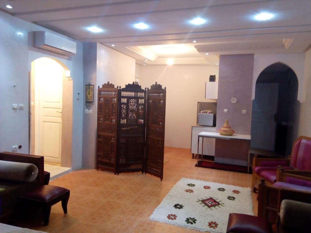 A clean roomy apartment with a secluded roof terrace in an excellent location. A ten minute walk from the airport - there cannot be much accommodation closer. A five minute walk to the bus stop to catch the #18 bus into central Marrakech and a five minute walk past the mosque to an array of cheap, good eating options and shops and the nights were peaceful. The apartment is self contained, really spacious with a small kitchen. The neighborhood is like a small town, but peaceful and friendly - going out at night was enjoyable and safe. If you want good accommodation near the airport with all facilities on hand, this really is hard to better. The host, as with most people in Morocco is friendly and exceptionally helpful.