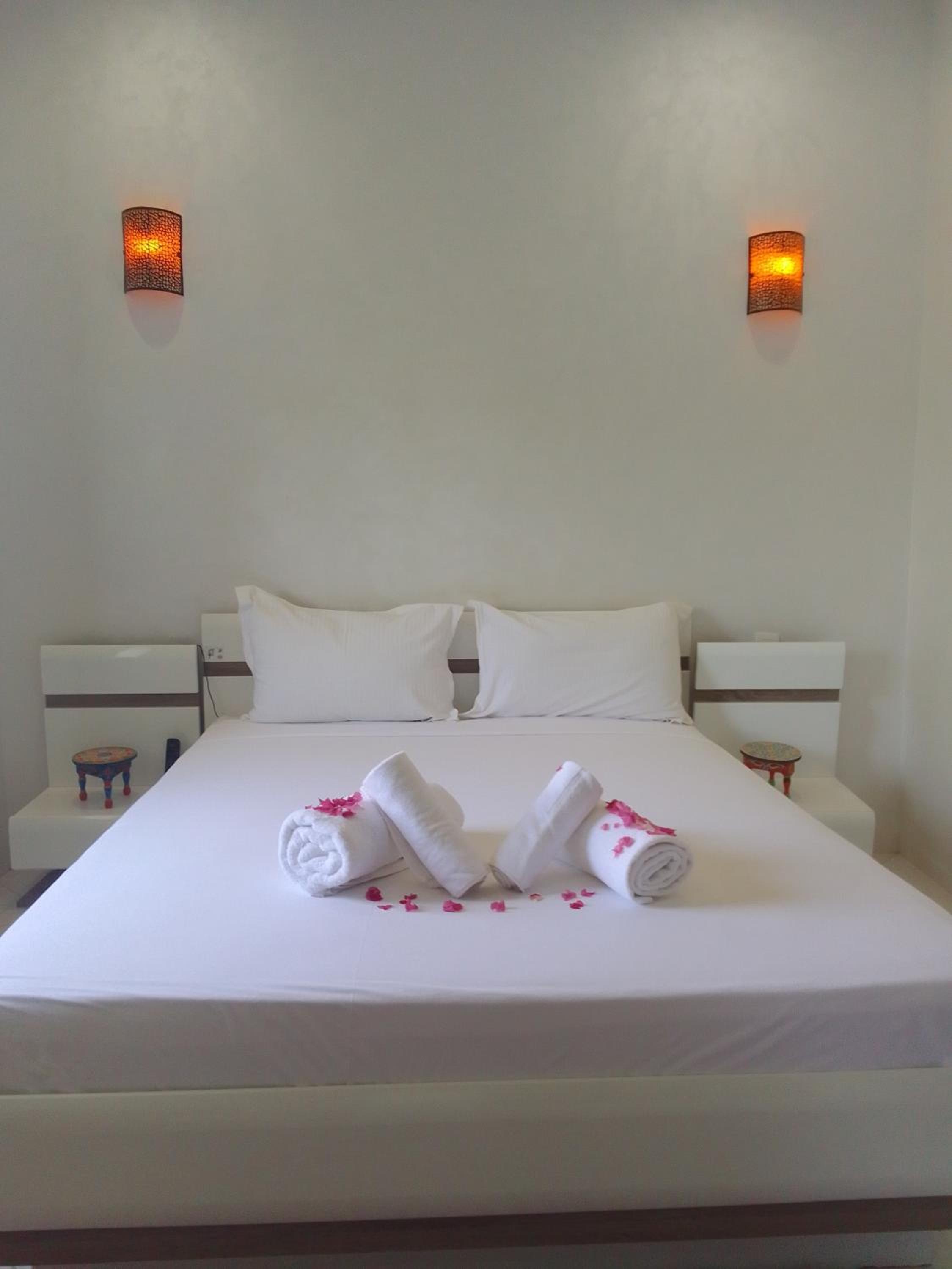 Literally everything! The room was nice and clean, the garden was beautiful, and the pool was never crowded. The staff was exceptional! They treat you like a king. They are always around you. At the pool, they ask about your favorite type of music and they play it for you as we were mostly swimming on our own. if you sit in the garden at night, they light candles around you and they play romantic music. Mohamed, Chaimae and Redouan truly made us feel at home. We had to leave early, so they woke up at six and prepared breakfast for two. And on the way back home the manager called to wish us a safe road. It was a nice experience and I would strongly recommend this hotel to every family and newly wed couple.