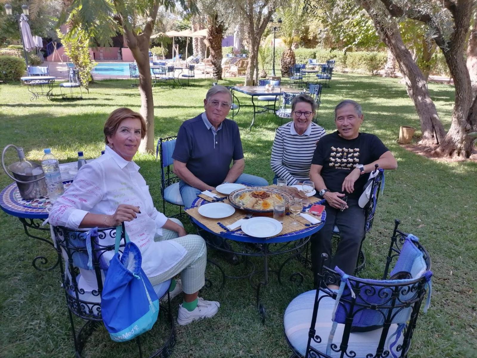 Halte de repos au calme à la campagne dans une Magnifique maison avec une belle piscine et un charmant jardin bien entretenu . Nous avons été accueillis dès notre arrivée par une équipe fort sympathique, à la fois efficace et décontractée : Mohamed, Majid, Anouar et Jean -Jacques qui on fait de cette courte étape un moment très agréable ! Sans oublier les femmes de ménage et les cuisinières !Tous les petits soucis ont été aplanis dans l’instant. Petit déjeuner délicieux ; seul bémol : les repas, bons mais trop chers, mais comme pour le reste, tout s’est arrangé.