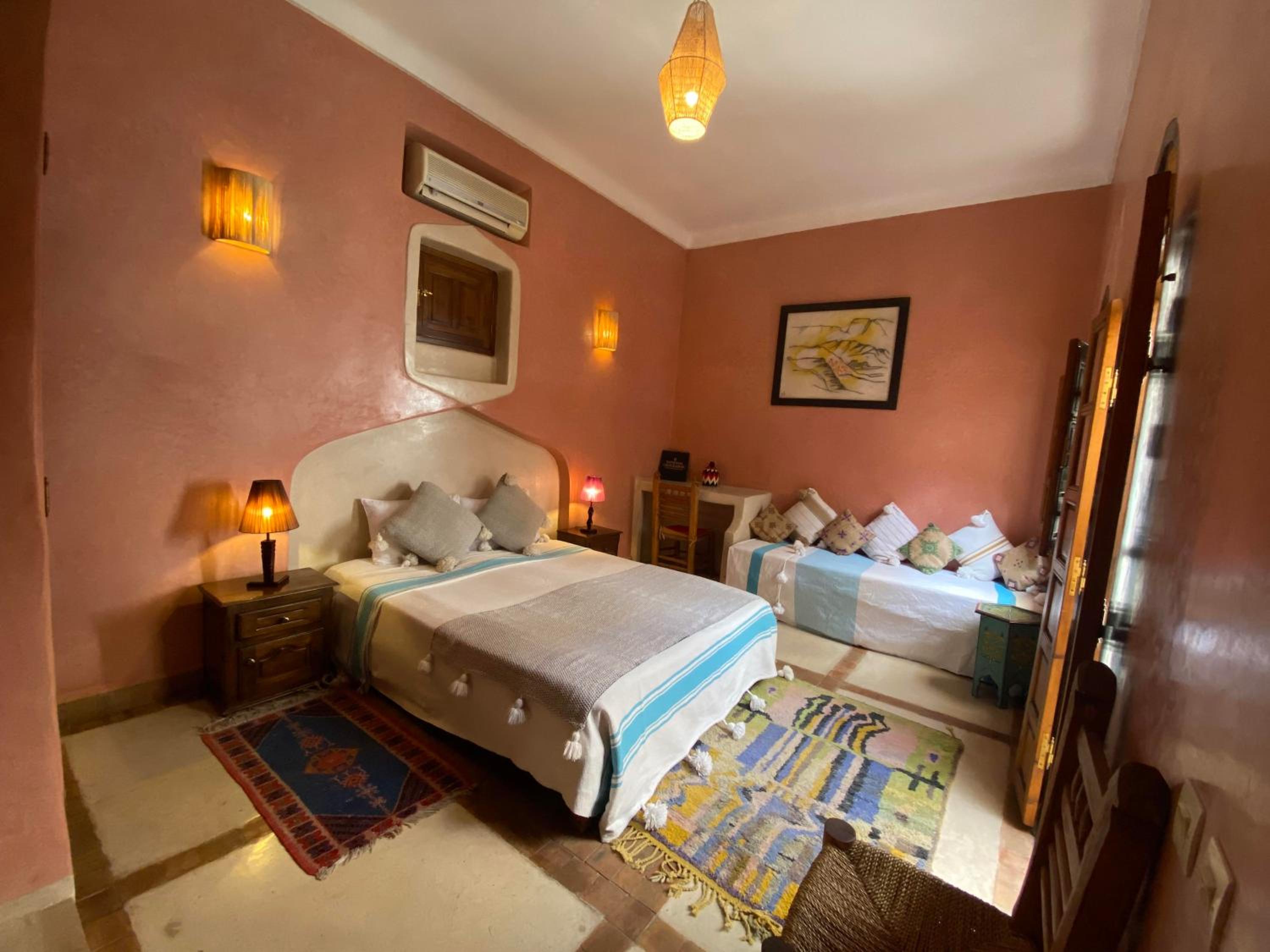 Amazing place. Very comfortable and clean.. and extremely quiet. It's located in the Kasbah of Marrakech.. not far from the old Medina.. a walking distance. The Kasbah is notoriously more calm. The room was very spacious and comfortable. Great beds and the bathroom nice and simple. A modern AC in the room. The Riad itself is surprisingly warm (we visited in winter time) and very pretty with cute simple decorations. Good breakfast.. and smiley attentive staff, you can have breakfast in the terrace. Super recommended for all types of visitors.