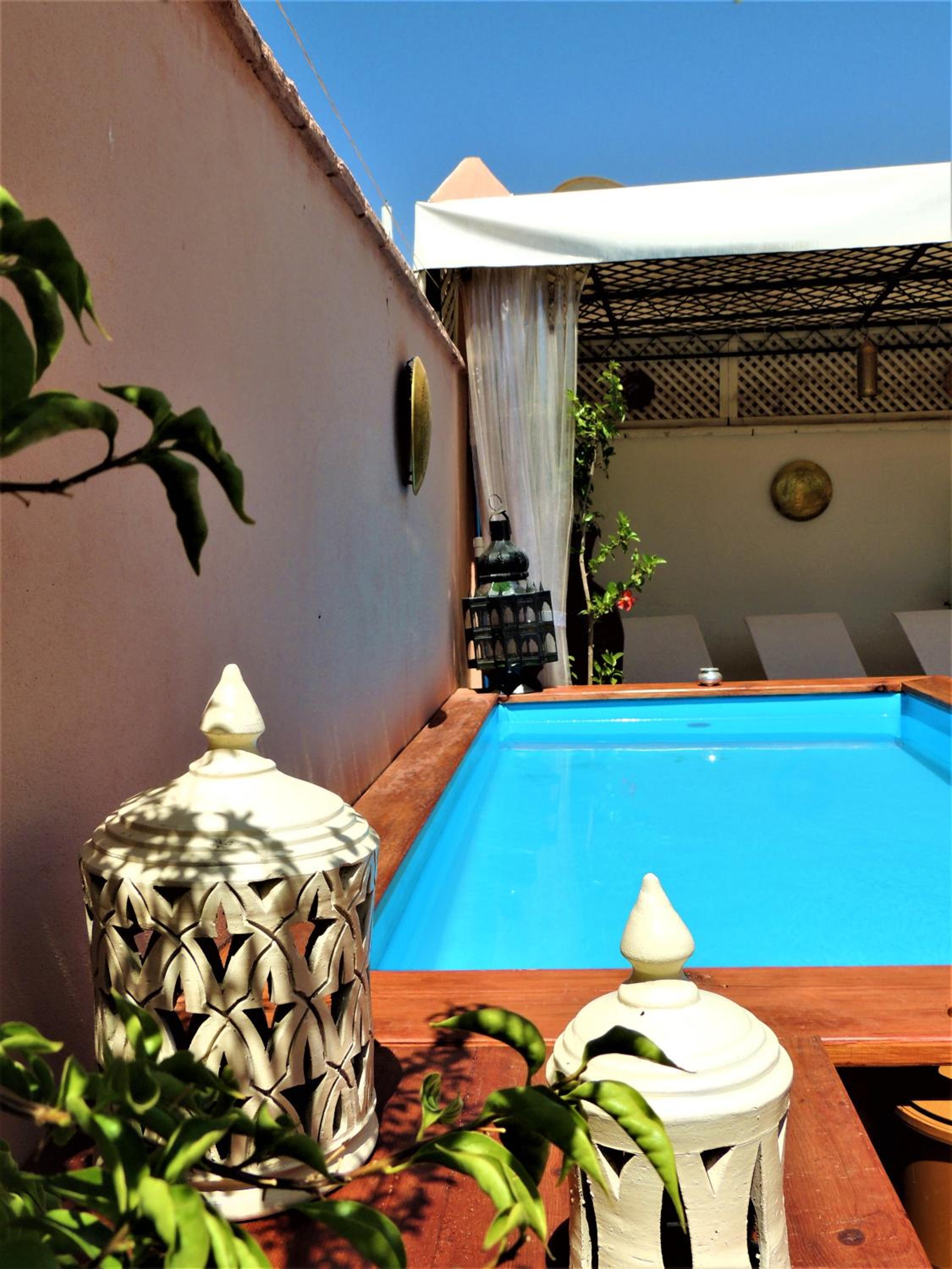 Experience luxury at Riad Tizgui Celine with a rooftop pool and a bar, perfect for unwinding after a day of exploring Marrakech. The air-conditioned accommodation, just 700 meters from Djemaa El Fna, offers a 24-hour front desk, full-day security, and currency exchange for your convenience.