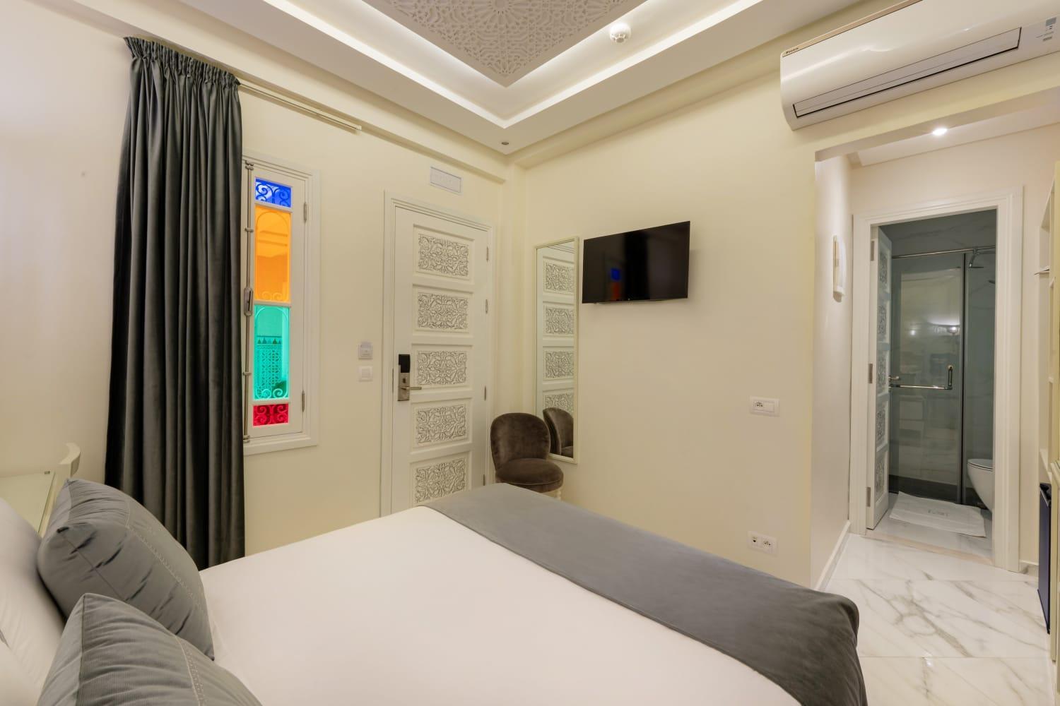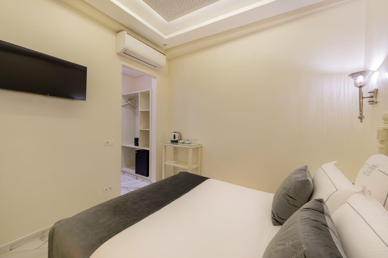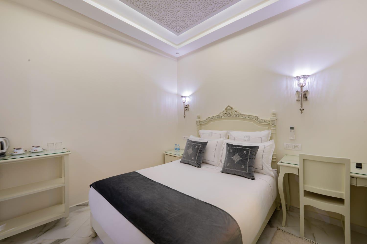 First of all, all staff members were so nice and friendly with me. Offering me a warm smile and talking so gently with me. The overall Riad was amazing I Really loved how organized and well decorated, specially with traditional Moroccan aesthetic. the room was very clean and tidy and well organized as well. I really loved it there. I highly recommended to book this Riad.