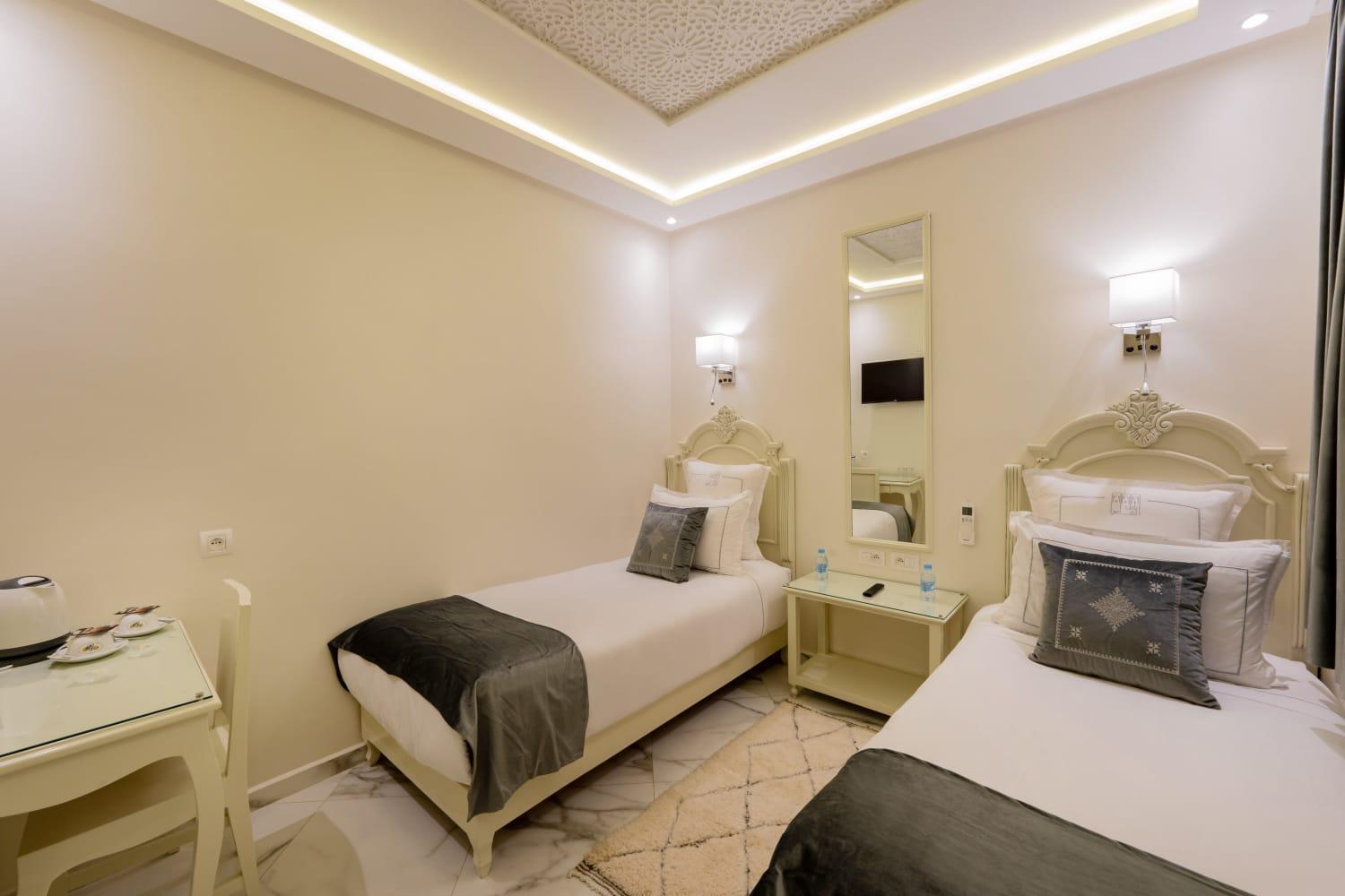 Cons: I reserved for 4 nights, the 2 first nights were fine but the last 2 days there were NO HOT SHOWER !!! Which really upset me, because it’s winter and for 100€ a night a hot shower it’s the minimum I expect to have. The staff said they would call someone to fix it, but they never did… because the problem it is: they don’t have a big enough heather for all the guests, in summer it may work since Marrakesh is really warm but in winter time it’s cold cold so it really bothered me they kinda lie about calling someone to fix it, since they knew what the real problem was. I suggest when the guest arrive they let them know about the shower situation and maybe advise them to not take long showers because the other guests might not have hot water for themselves.