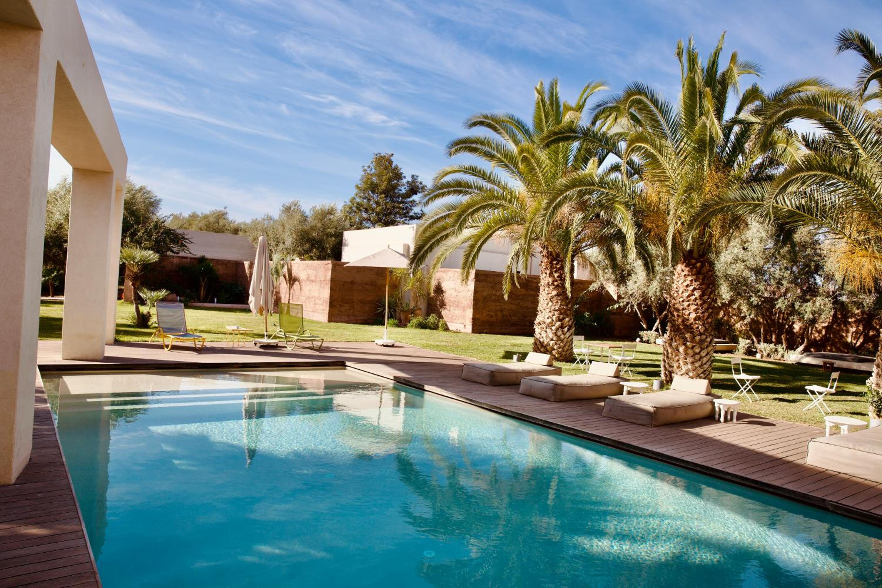 Le cadre est magnifique et le personnel et d'une gentillesse comme j'ai rarement vu. Le lieu est idéal pour être au CALME, le vrai calme, sans bruit, un vrai silence. C'est un lieu tellement apaisant. La nourriture sur place et exceptionnel ! Je reviendrai souvent ça c'est sur mais je m'organiserai différemment : Il est à 15 minutes du centre de Marrakech, pour nous les français ça peut faire très proches mais pour les marocains c'est un hôtel qui est éloigné donc le prix du taxi peut vite monter. 30 euros minimum un allé retour en centre ville. En revanche ils ne sont pas honnête sur les prix, les prix étaient différents en fonction de la personne à qui zon demandé. (Une personne nous disait 5euros, la deuxième personne 15 euros) Faire attention à bien clarifier le prix à l'unité des produits proposés sur sur la carte si vous voulez pas vous retrouver avec une note salé comme nous. Je tiens à préciser que ce n'est pas seulement avec eux mais avec tous les marocains pratiquement gros point négatif car ton budget peut vite doubler 😕