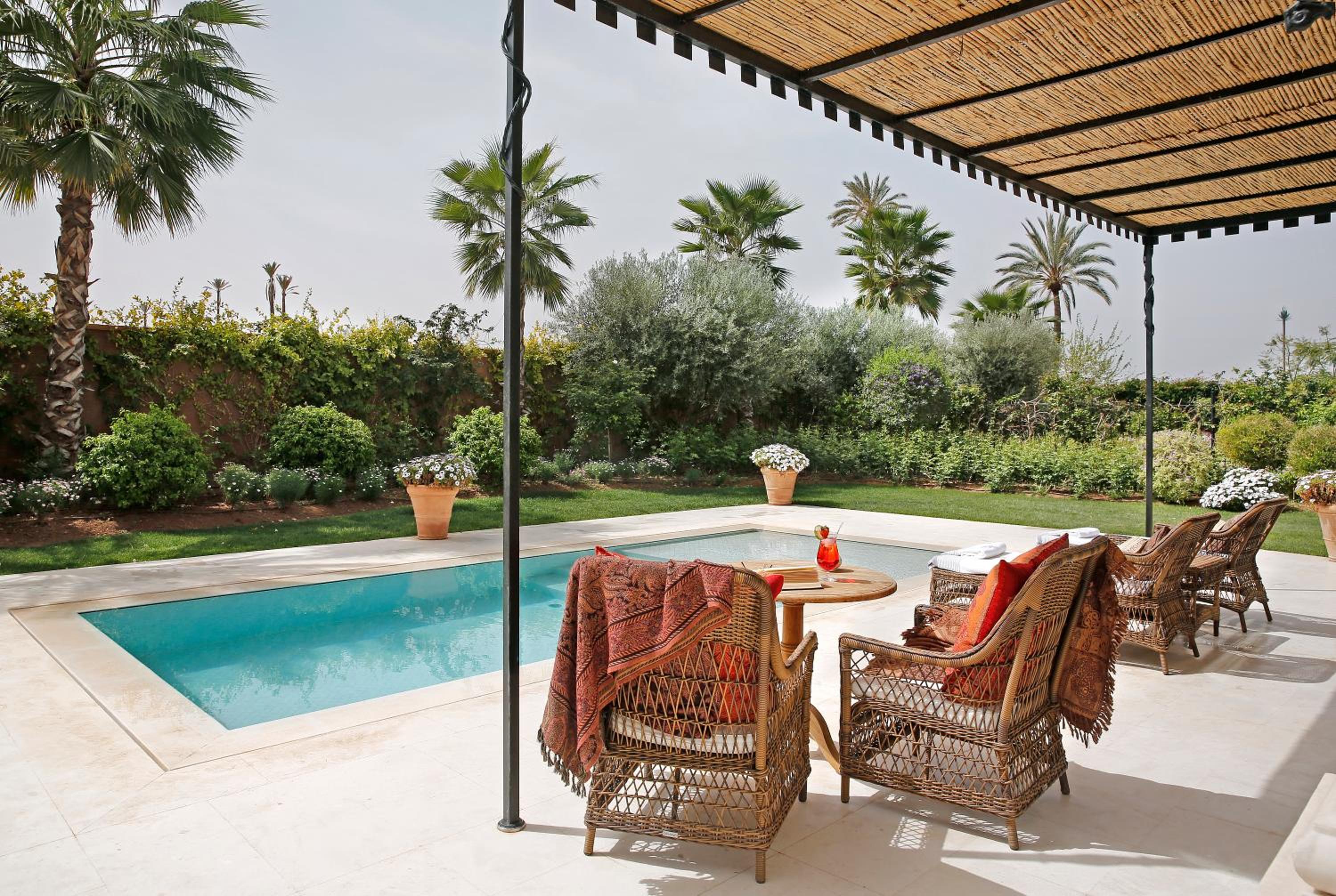 Un havre de paix au sein de la palmeraie, Une déco luxueuse et raffinée, Des jardins magnifiques et reposants. Service parfait et personnel attentionné