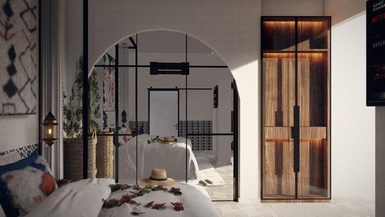 Cons: Mauvaise qualité de certains équipements (portes des meubles de rangement, fenêtres…) alors que la chambre est neuve. (Il s’agissait d’une chambre supérieure) Manque de praticité de la chambre (manque de porte-serviettes dans la salle de bains, pas de bouilloire…) Insonorisation inexistante. On est dans la rue !(vivante à Marrakech !) Le Ryad semble en rodage. Si tout est propre et clean l’atmosphère est un peu froide et les espaces communs petits et peu conviviaux.