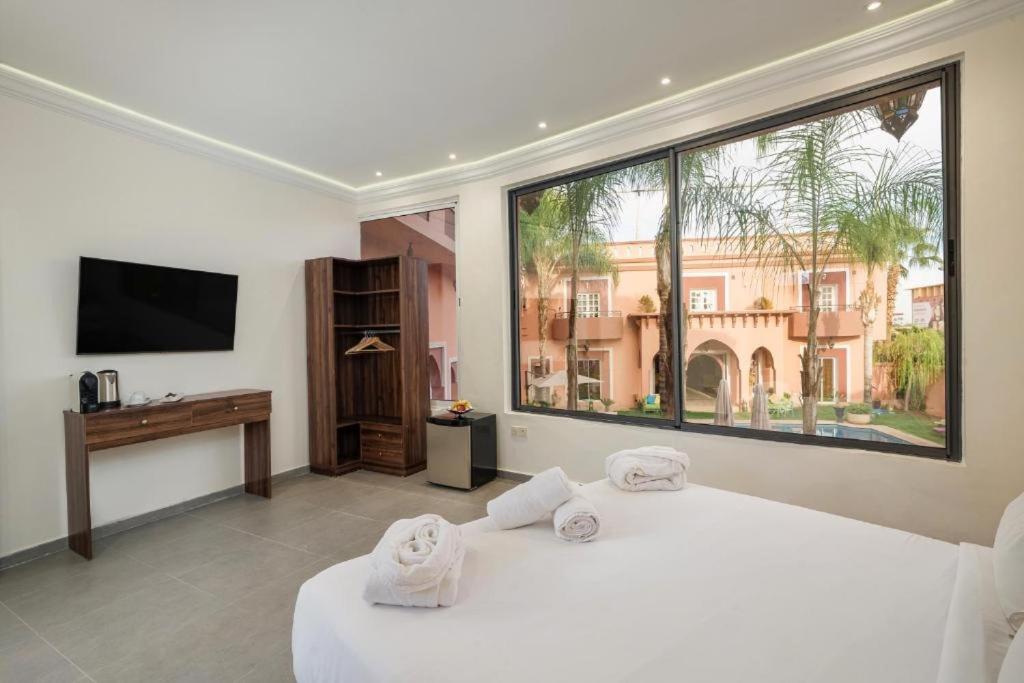 A beautiful small (16 room) boutique hotel less than 10 minutes away from the medina. beautiful pool, large clean rooms, very friendly and helpful staff, good breakfast, large TV and safe in the room. A fantastic place to take a brake from the hectic Marrakech. A small shopping mall next door + a movie theater were the icing on the cake. Close to the best restaurants in town. WE LOVED IT!