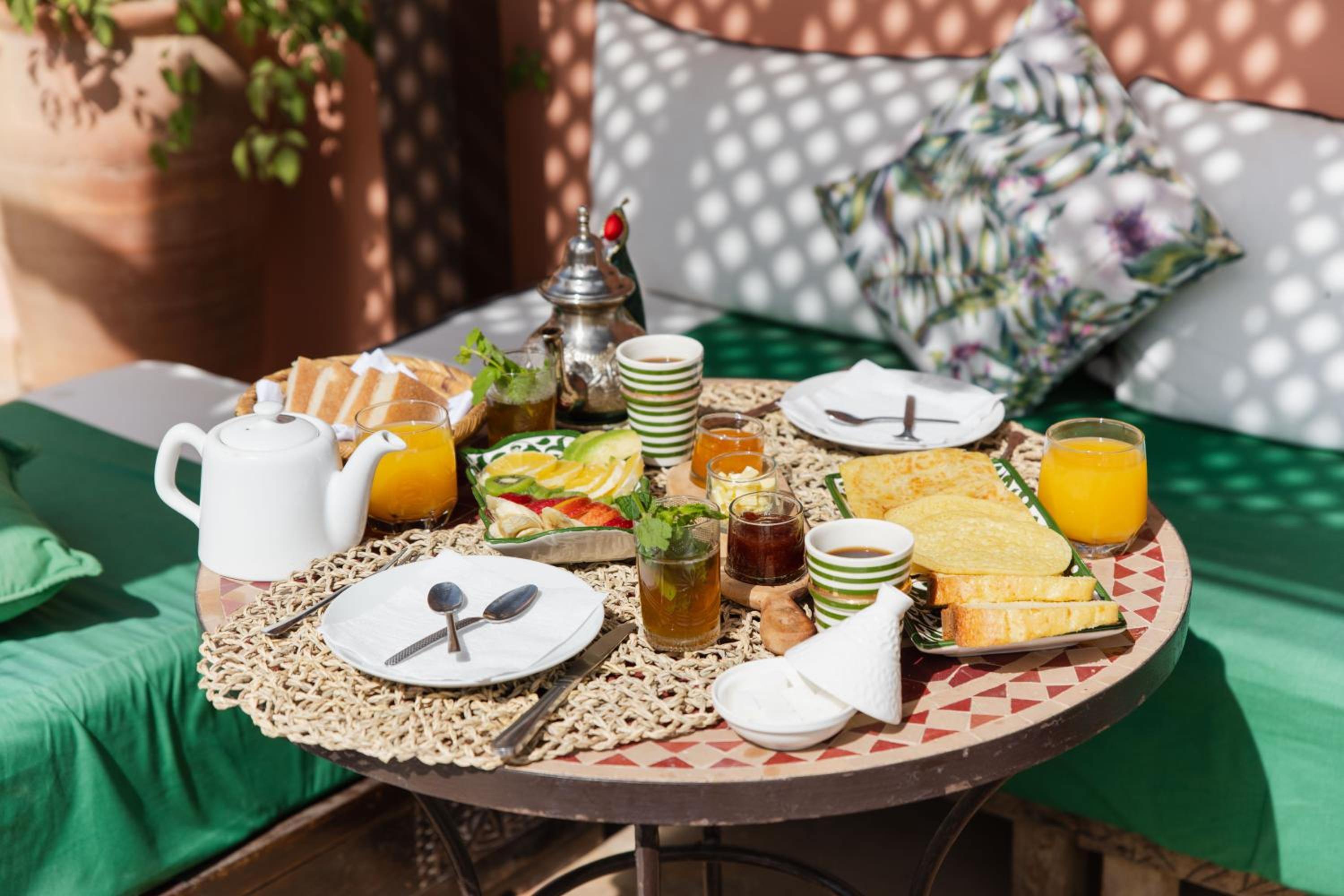 The Riad was clean, safe, service was great all around. The breakfast was fresh and good quality. If you are there for a few days is it the same with the exception of a few changes but very good. Fresh fruit fresh squeezed juice. The room was small but good for 2. The ambiance of the room and Riad in general awesome. Breakfast was served outdoors on the terrace. The service and staff outstanding. They arranged for pickup of car service and even took you right to the Riad. Great value. Highly suggest. Thank you