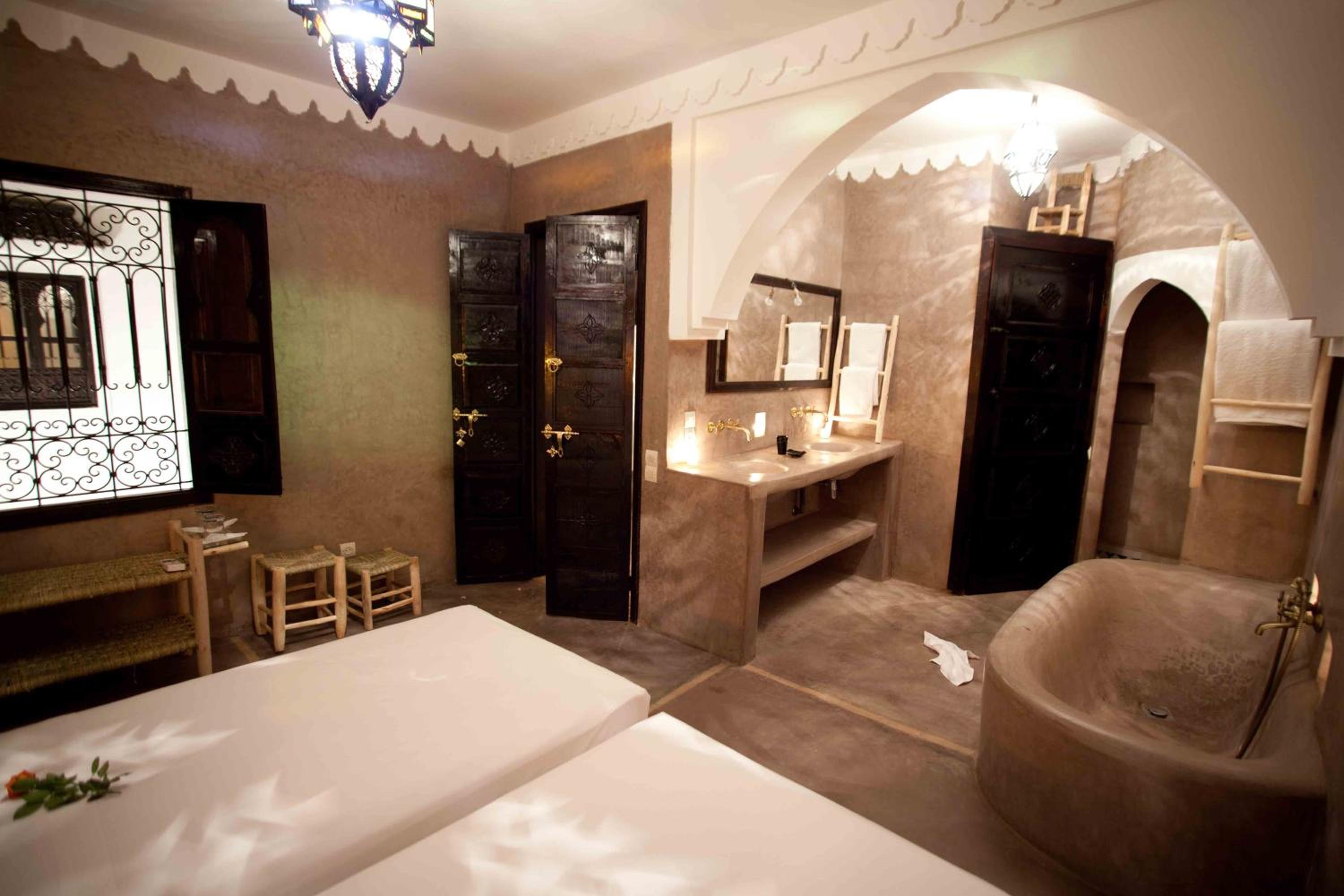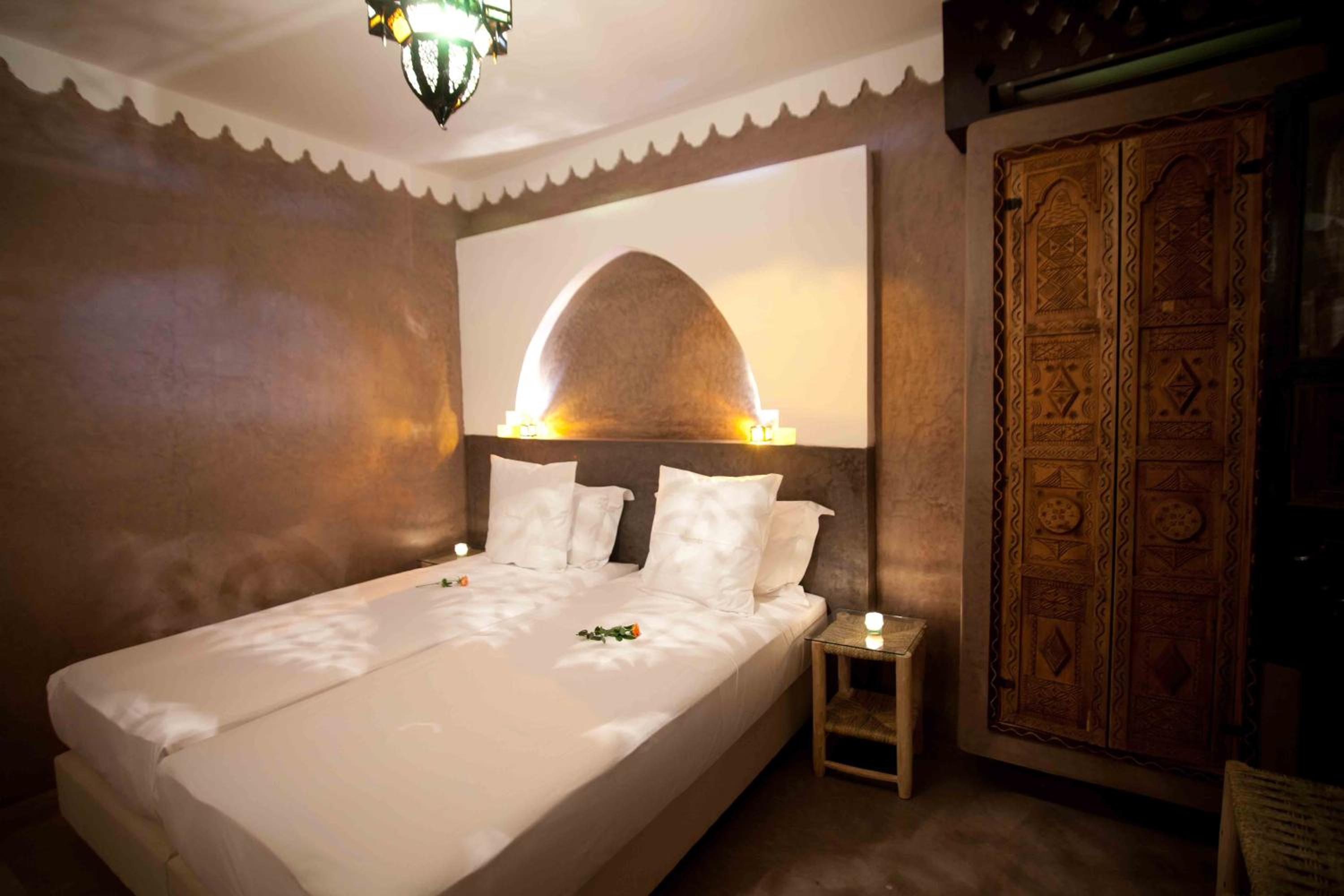 Luxurious Accommodations: Experience the charm of traditional Moroccan decor in our air-conditioned rooms, each featuring a private bathroom and access to a picturesque patio.