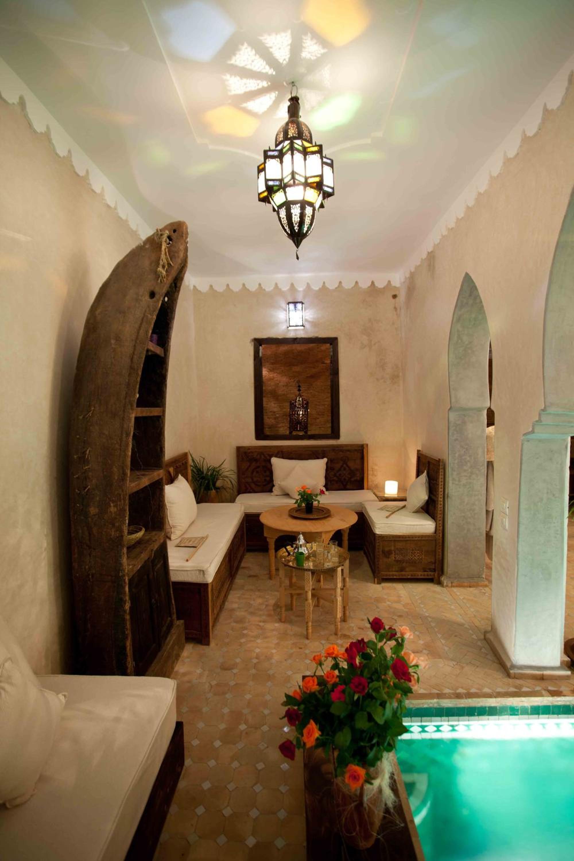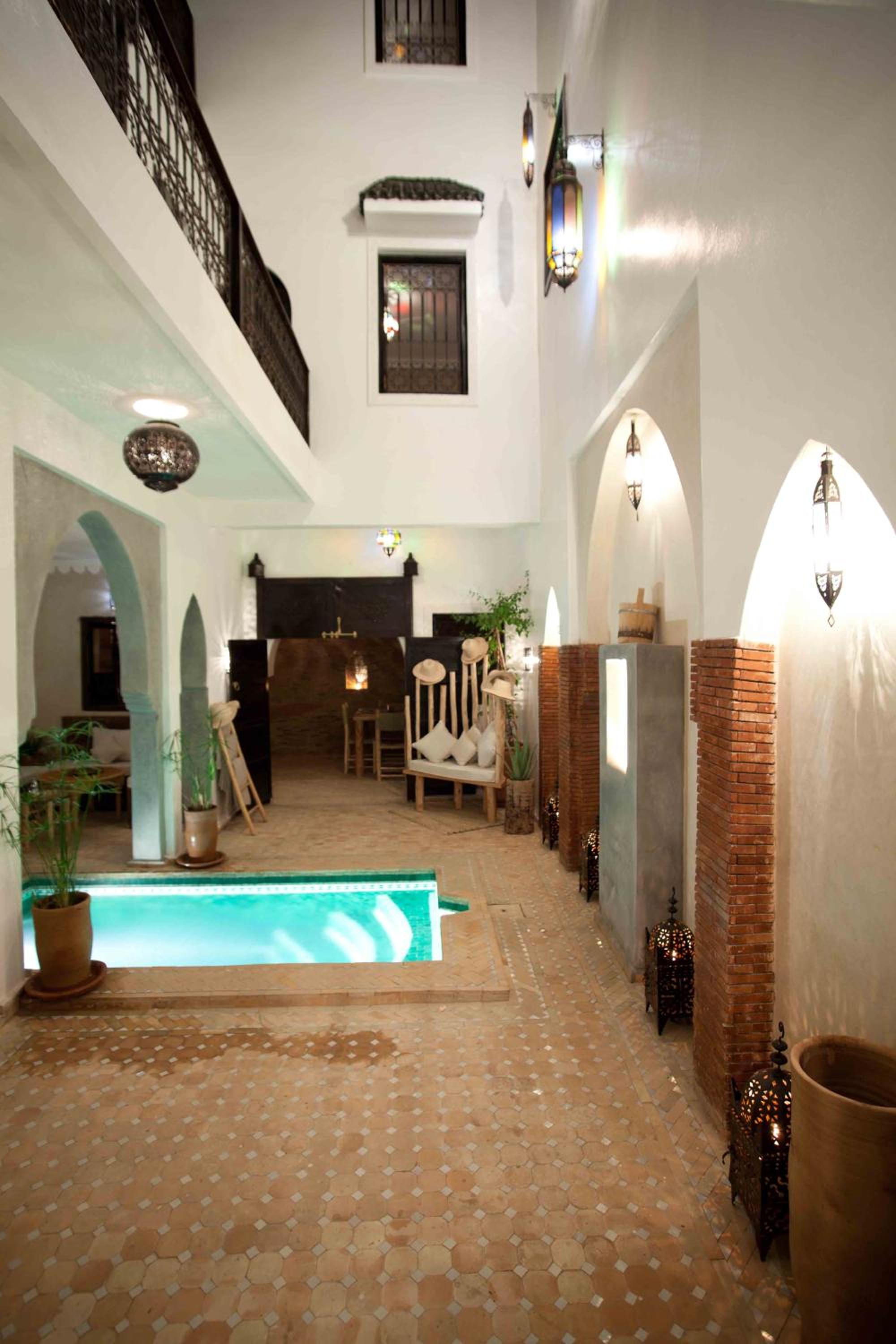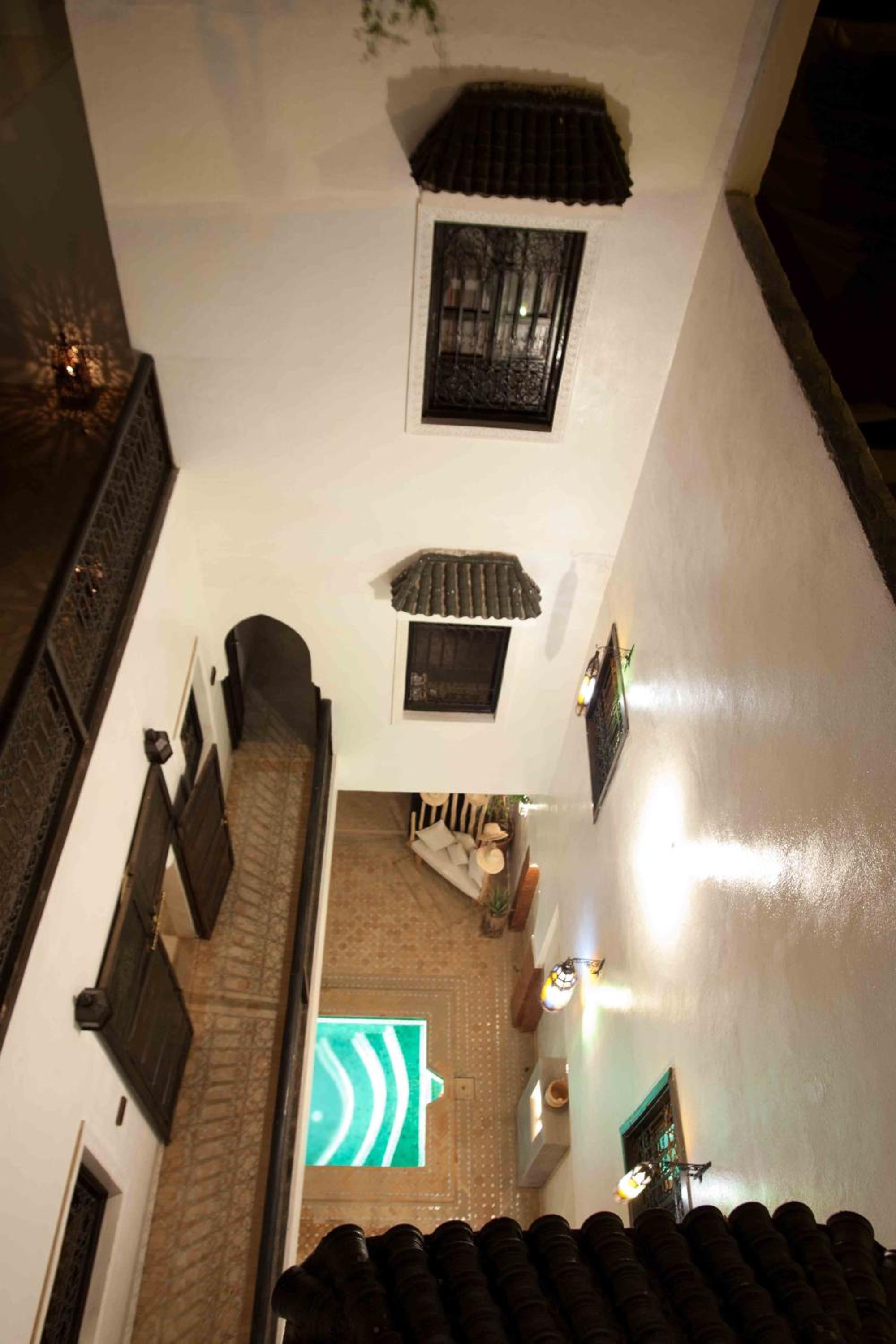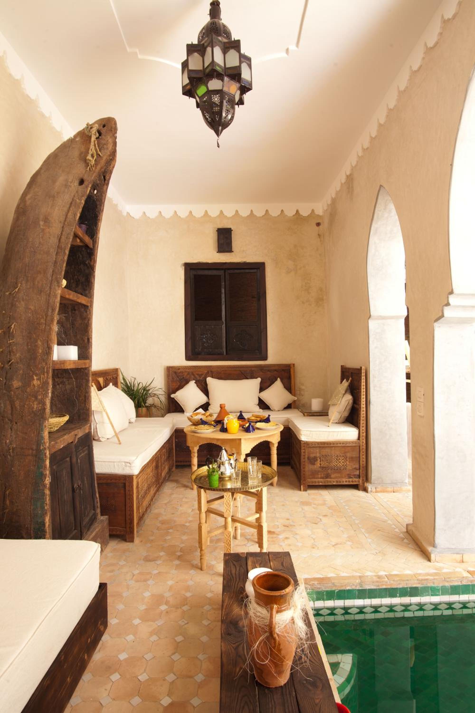 it has a lovely authentic feel, the courtyard pool, open plan stair cases and roof terrace make it feel spacious. The staff are amazing, they really looked after us on our first day in Marrakesh. When they didn’t have room for us when we returned from the Atlas Mountains they helped us find a lovely room in a nearby guesthouse. great food too, this place lives up to its reviews