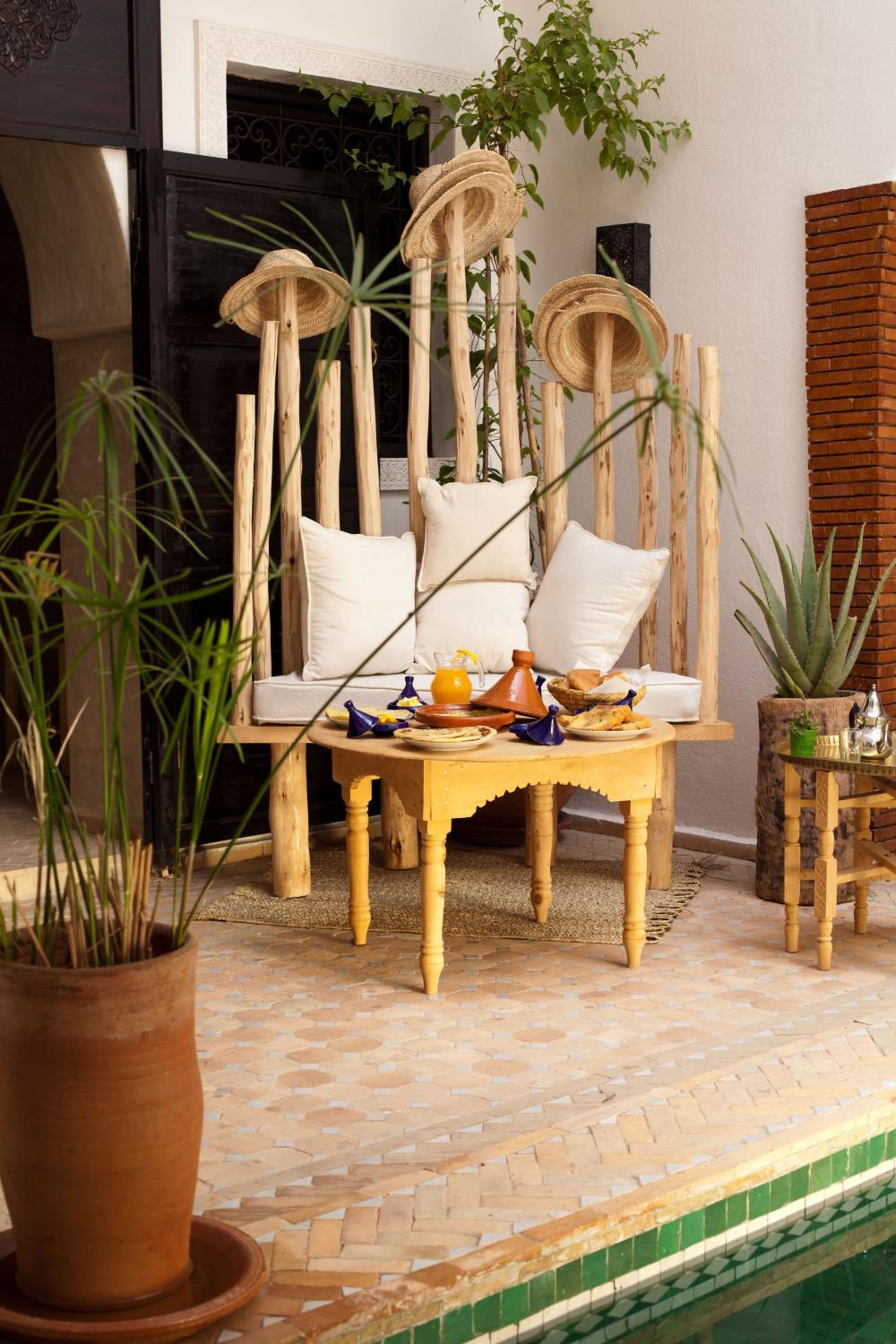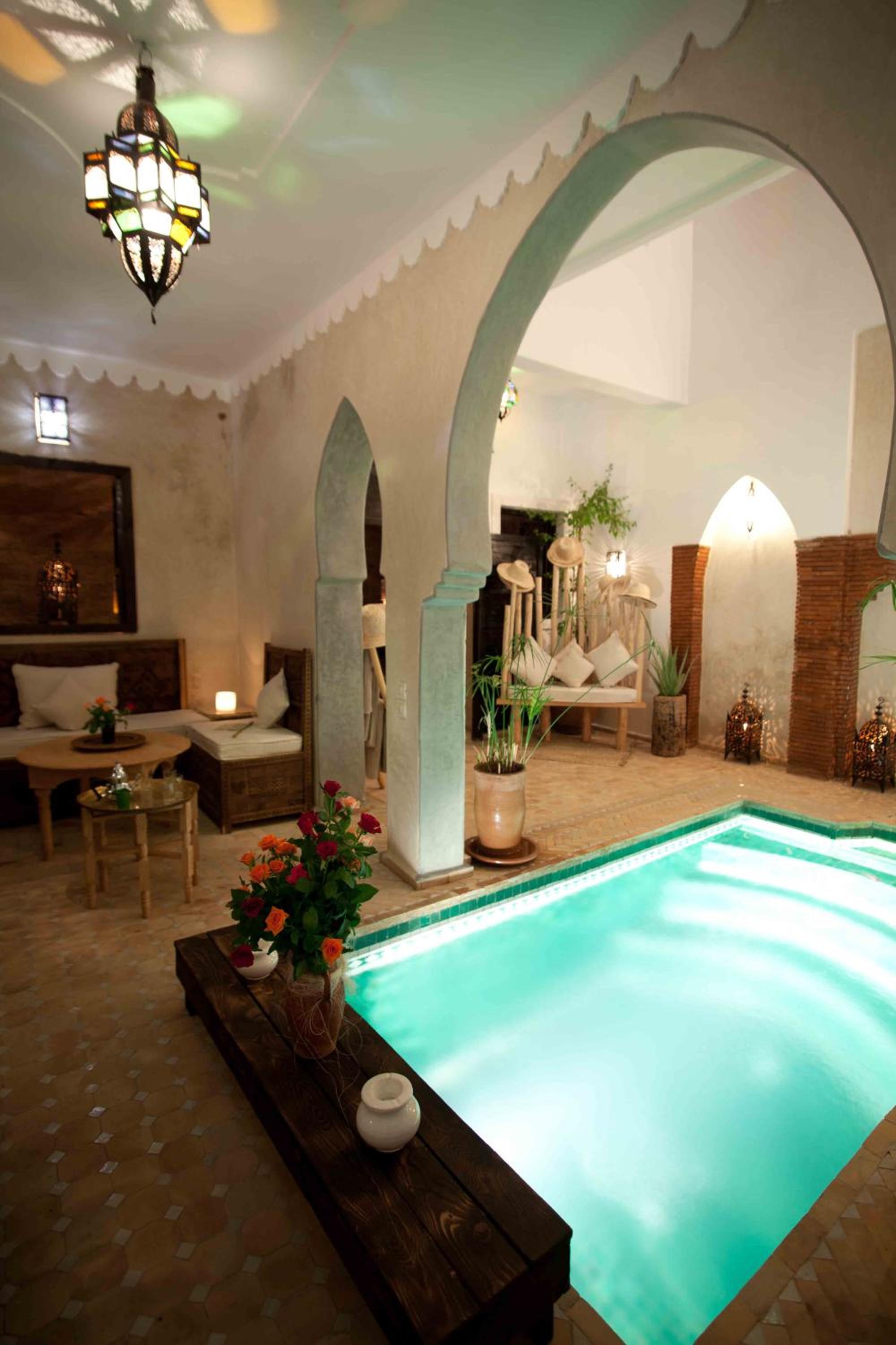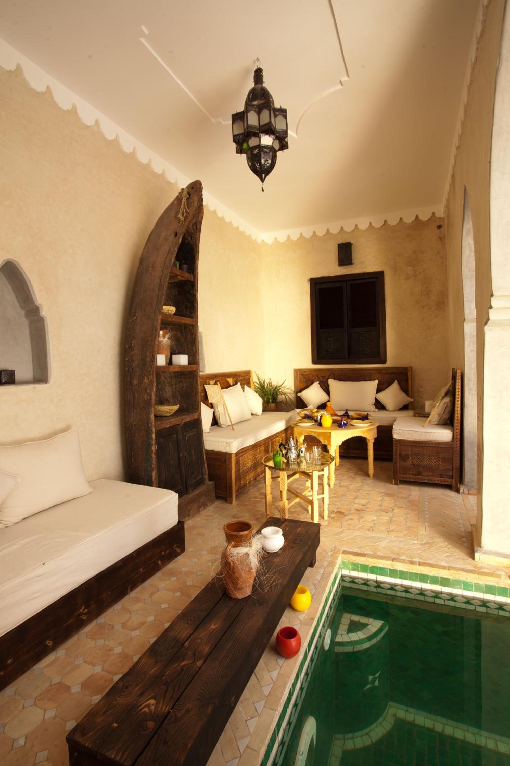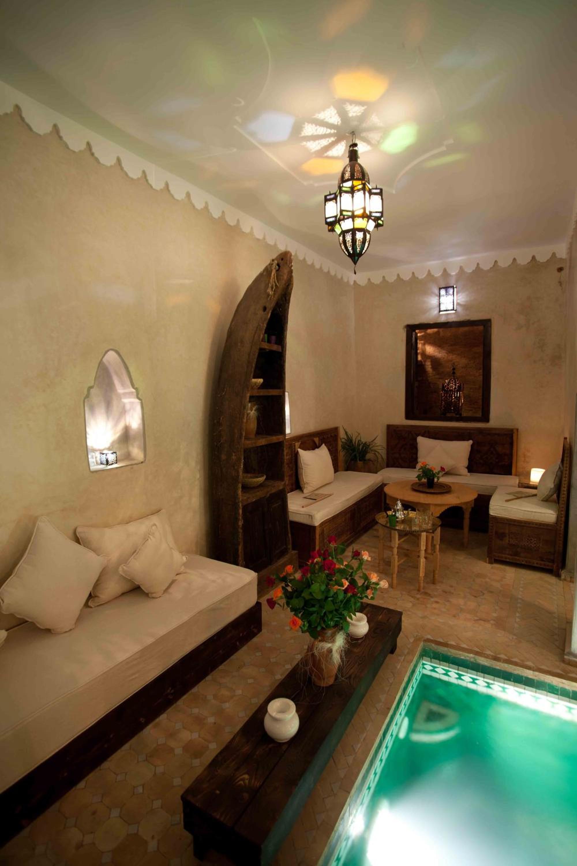 it has a lovely authentic feel, the courtyard pool, open plan stair cases and roof terrace make it feel spacious. The staff are amazing, they really looked after us on our first day in Marrakesh. When they didn’t have room for us when we returned from the Atlas Mountains they helped us find a lovely room in a nearby guesthouse. great food too, this place lives up to its reviews