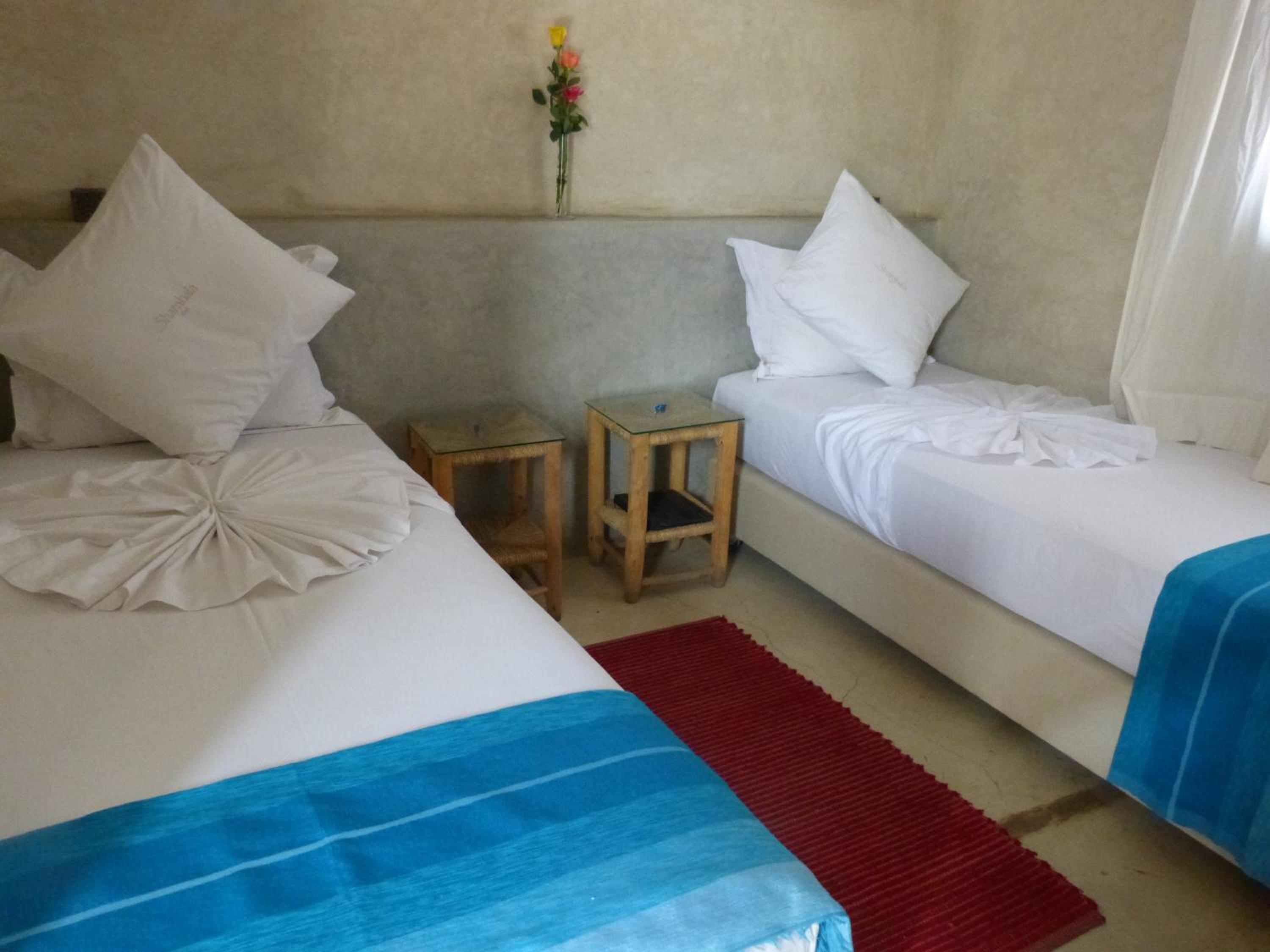 We went and booked Shamballa because of the nice reviews. I will be honest, allthought the staff is very friendly. We had the tiniest of rooms, my husband also had to climb over me to get out of the bed. An open bathroom/bedroom experience. Smoking men just under the bathroom shutters, talking all night. Not the Riads fault, but in a nearby house, a woman and her husband were in som very loud fights and serveral nights she was screaming and crying. Very upsetting. Tipped the staff well, in hope to get a pot of coffee with milk every morning. We didnt every morning though. No soap in the downstairs bathroom the staff uses, also the same who cookes the breakfast. Broken furniture. But! An old part of town, and much more quiet than if you stay closer to the Souk and plaza. Beautifull terrasse x 2. Amazing view over the outer part of the city. Very nice and hospitable guy who takes care of the guests every day. Breakfast is very nice. Bed vas also very good. A very pretty Riad. A 15-20 min walk to the shopping area/Souk. So, if you can lower your american/european expectations, we do recommend this Riad, just make sure you dont get the smallest room.